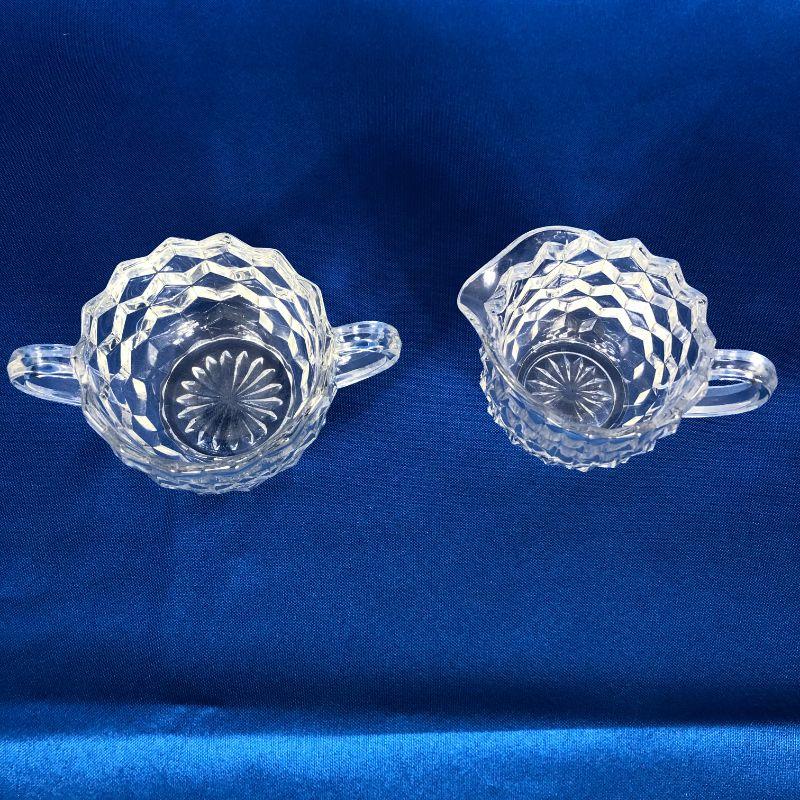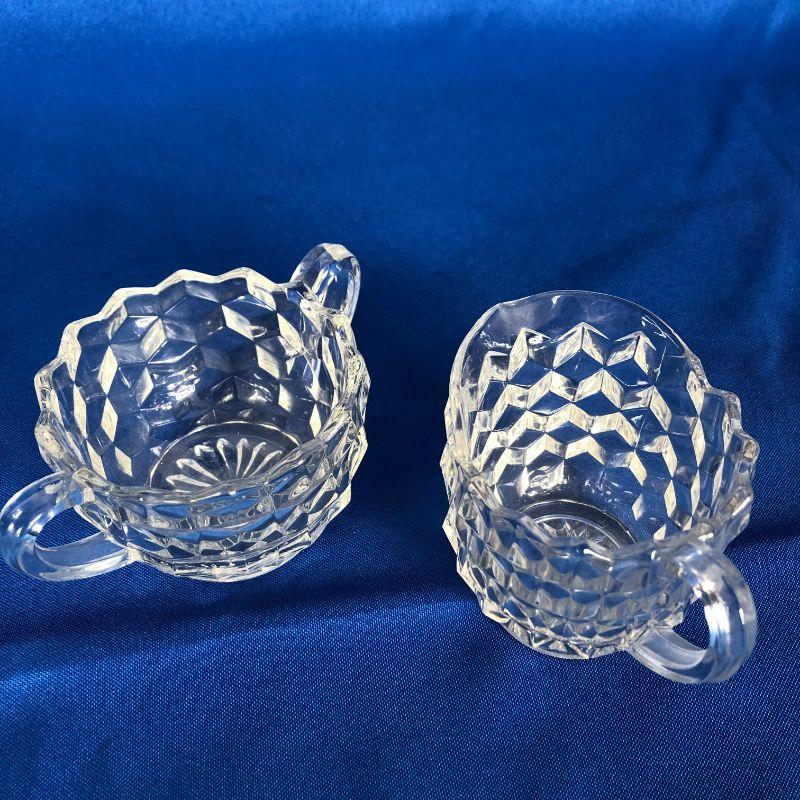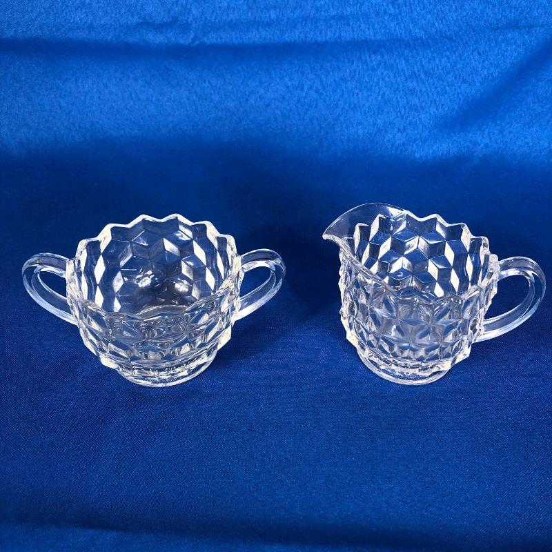 Fostoria American Platter sugar and creamer set. Hand blown vintage glass