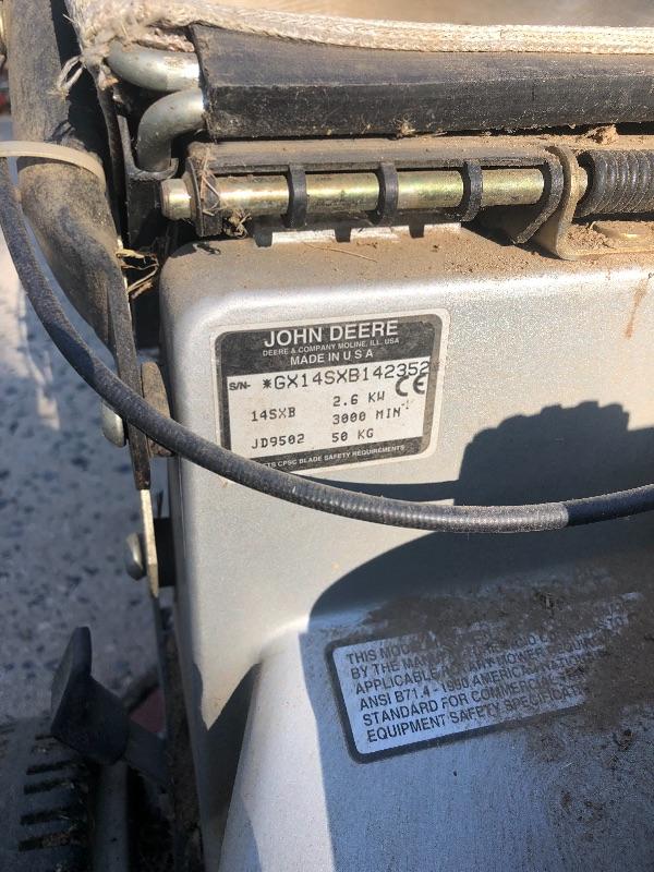 John Deere 14SX Gas Powered Commercial Lawnmower. MM Please see all pictures for content of the lot, condition of the lot, and measurements if taken. Pictures are the best representation of the items listed and items are untested unless indicated in description. Thank you for looking and have fun bidding!
