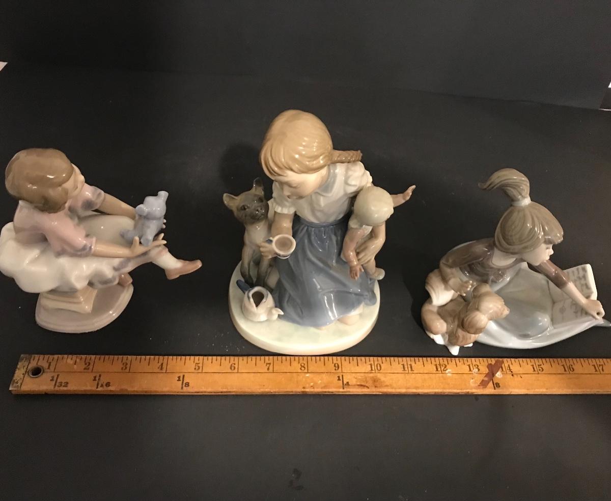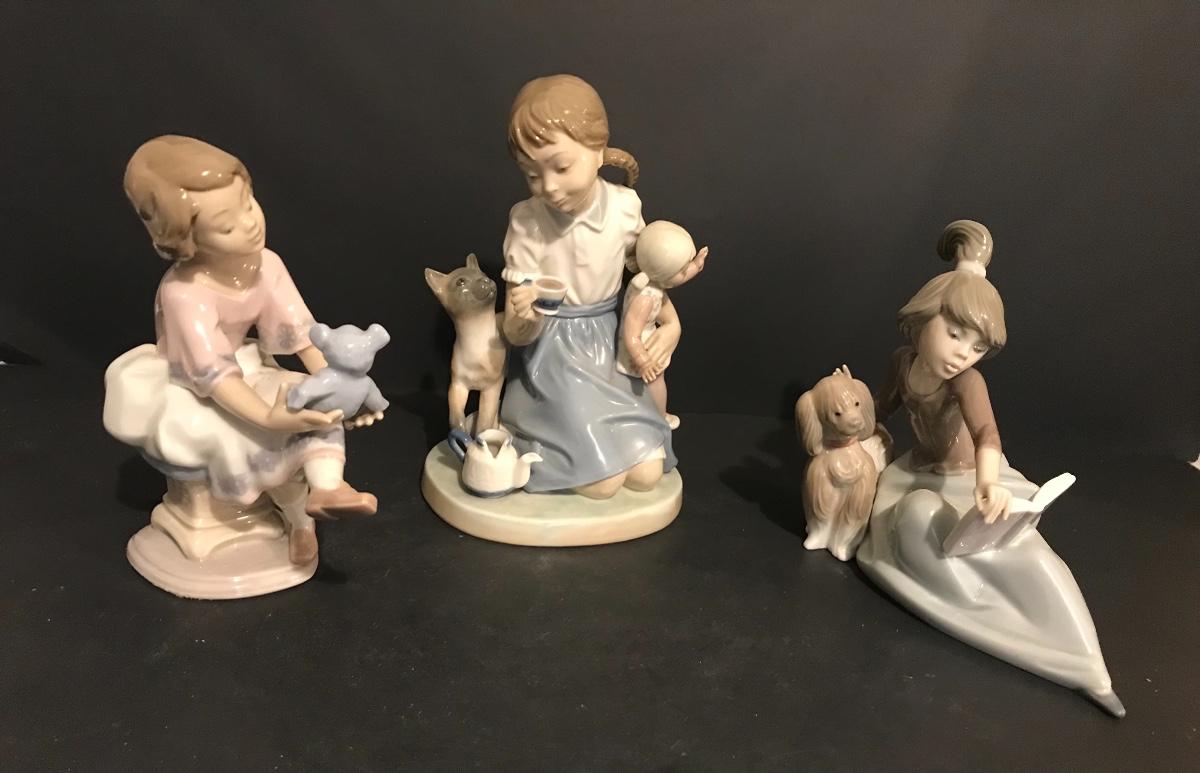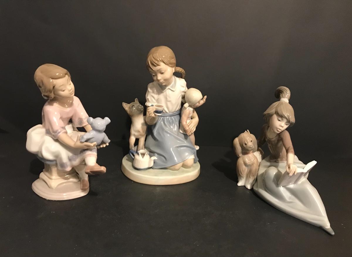 Girl With Blue Teddy Bear #7620, A Lesson Shared #5475 & Child’s Play #1280. All Lladros are in excellent vintage condition without original boxes, except where noted. All items have been inspected and any damages or imperfections have been photographed and noted to the best of our knowledge and ability. It is the responsibility of the buyer to inspect all pictures, as they are the best representation of the items. The pictures show condition, measurements if taken, and what is included in the lot. Upon pickup, it is the responsibility of the buyer to inspect their items prior to leaving the premises. Once the items leave the premises, there will be no refunds or returns. Buyers are also responsible for bringing their own boxes and packing materials for their items. Thank you.