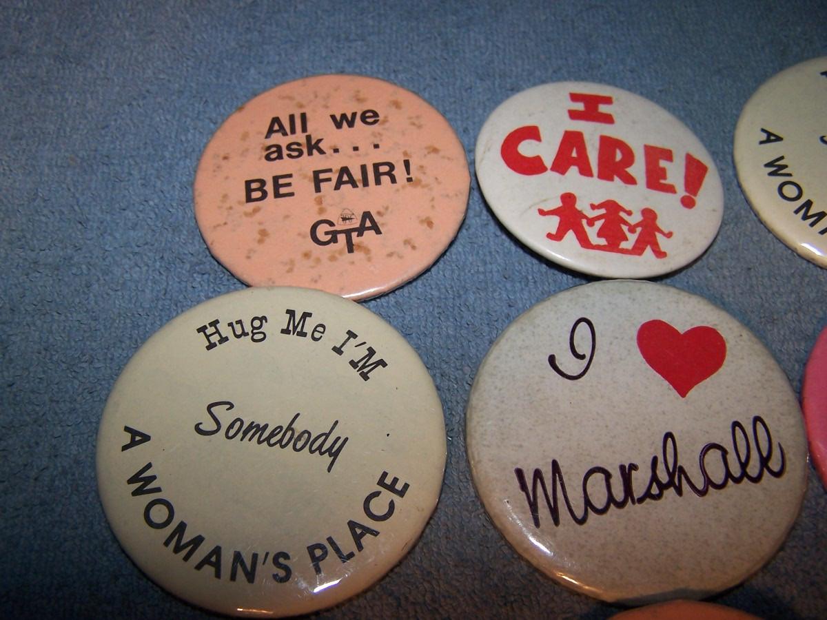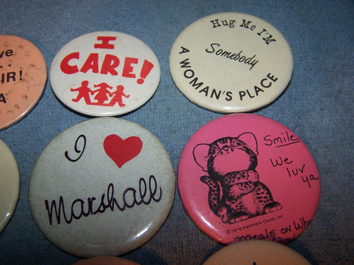 GREAT COLLECTION OF PINS/PINBACKS---WOMEN'S INTEREST, PLUS MORE... SOME SPOTS AND LIGHT WEAR...