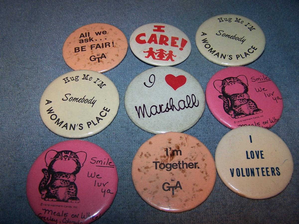 LOT 57 GREAT COLLECTION OF PINS/PINBACKS---WOMEN;S INTEREST/MEALS ON WHEELS