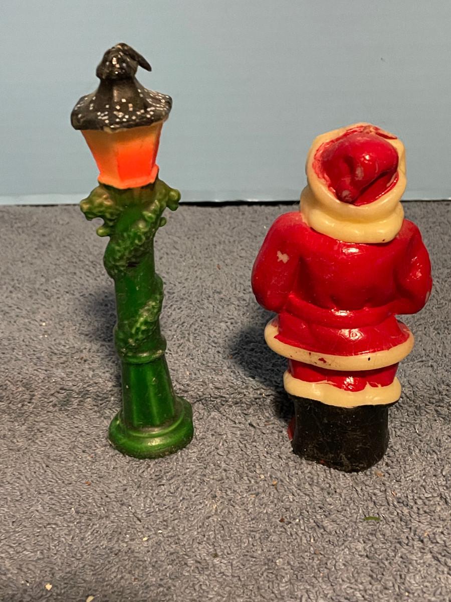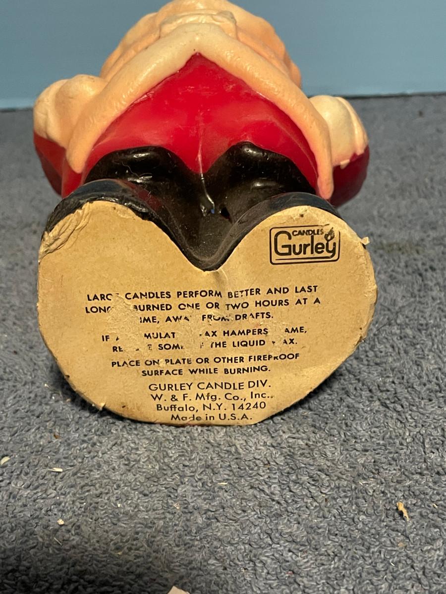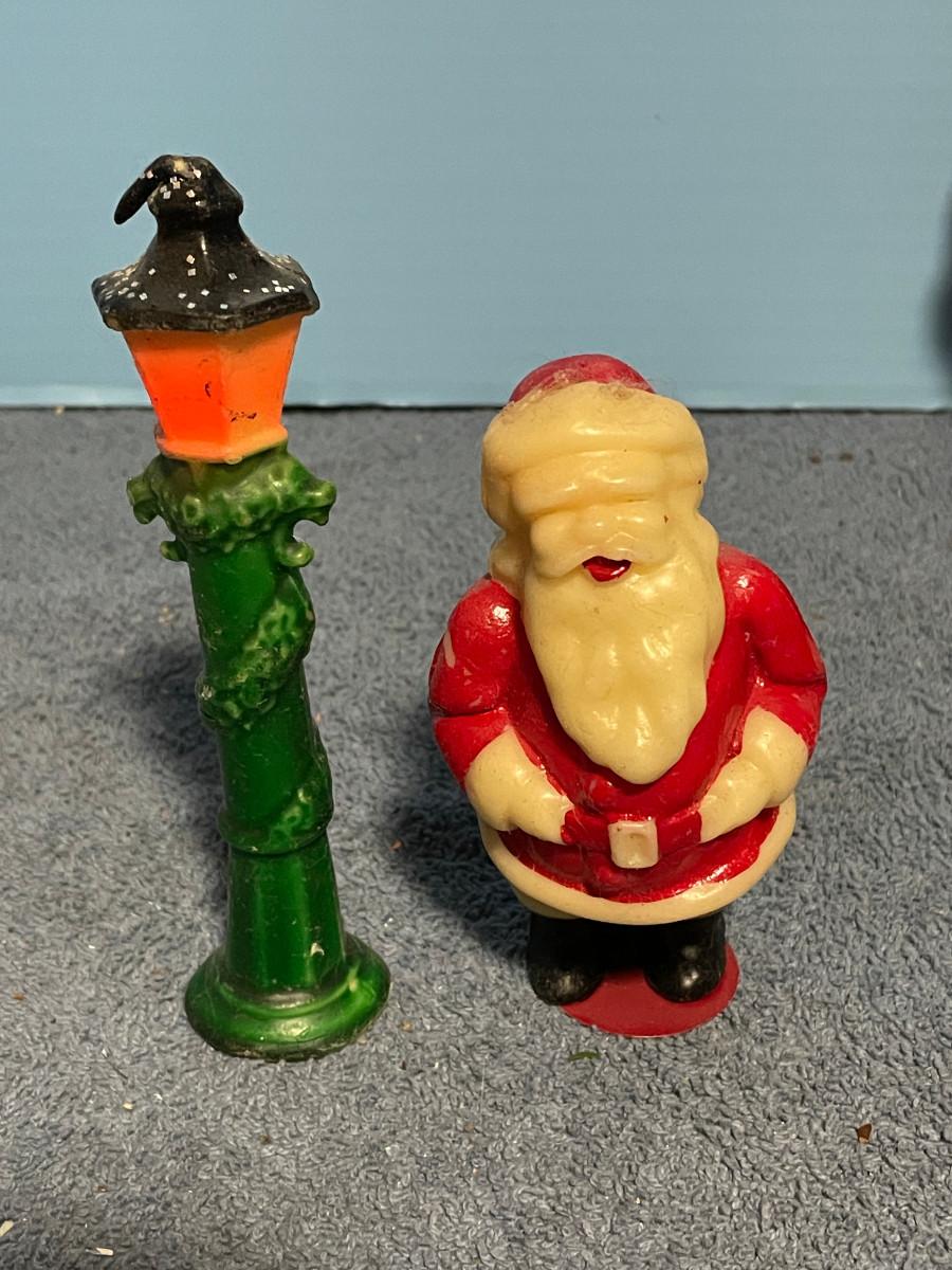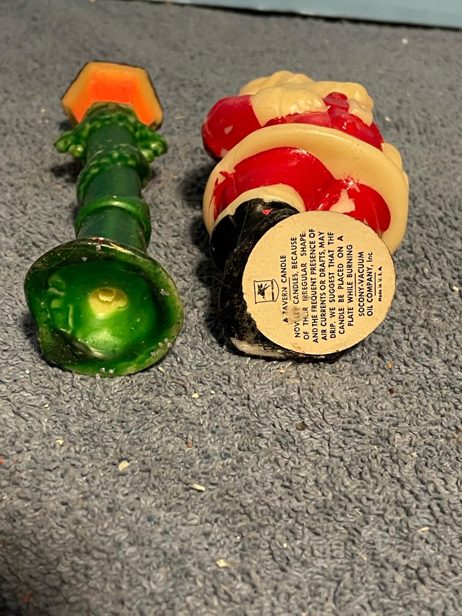 THESE ARE GREAT GREAT VINTAGE MCM CHRISTMAS CANDLES, GURLEY!!! 1 3/4'' TALL, IGLOO IS MISSHAPED.. TALL SANTA HAS BEEN USED... LIGHT WEAR..
