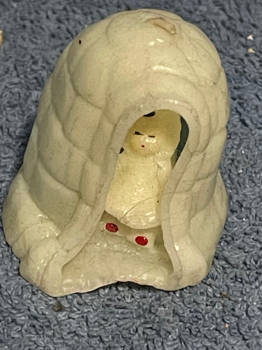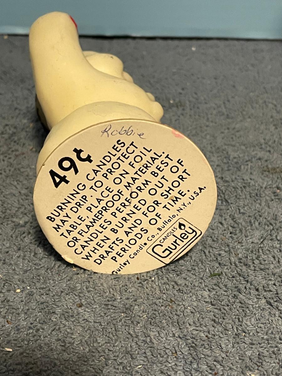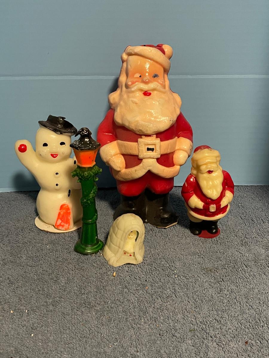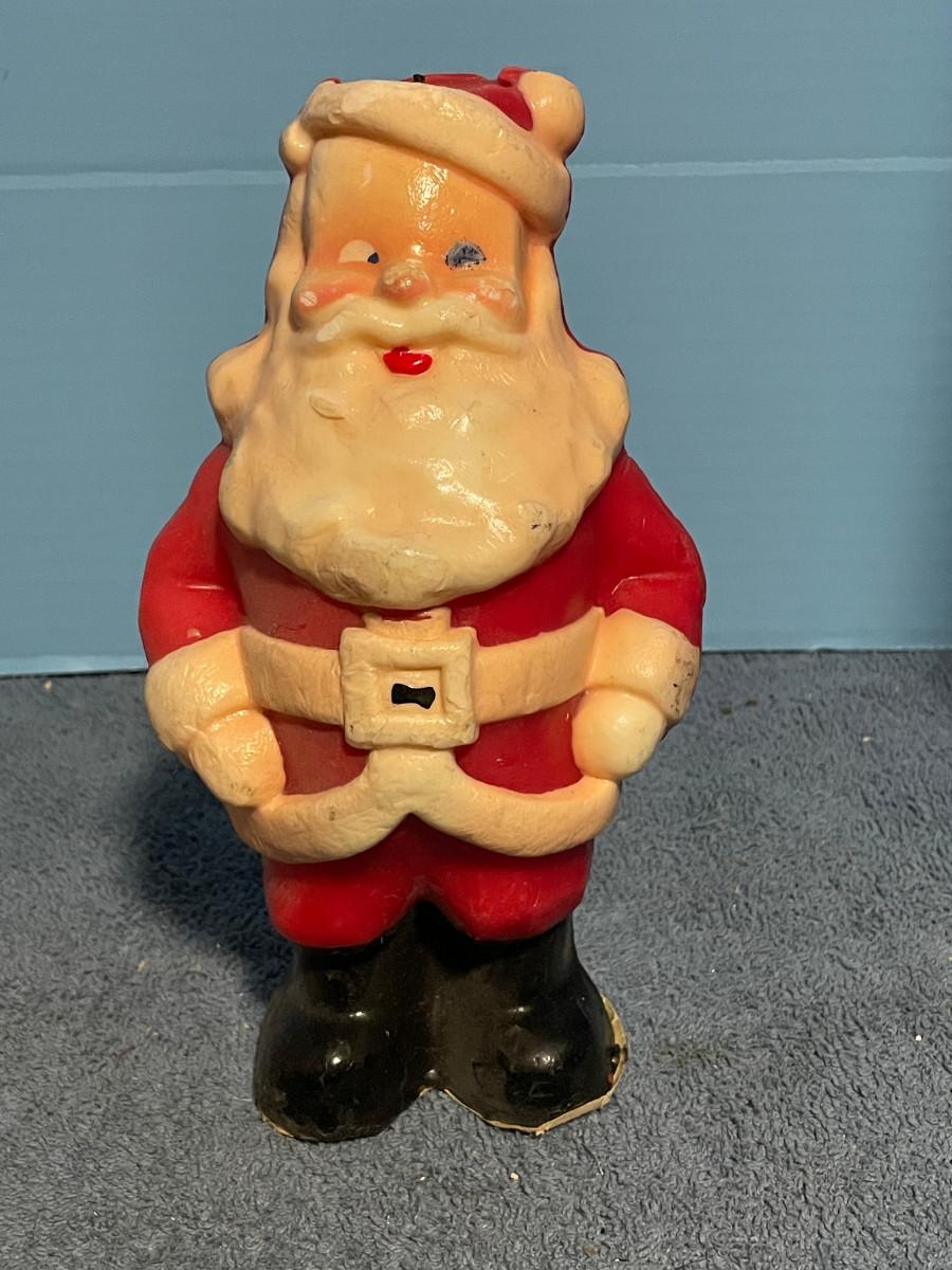 THESE ARE GREAT GREAT VINTAGE MCM CHRISTMAS CANDLES, GURLEY!!! 1 3/4'' TALL, IGLOO IS MISSHAPED.. TALL SANTA HAS BEEN USED... LIGHT WEAR..