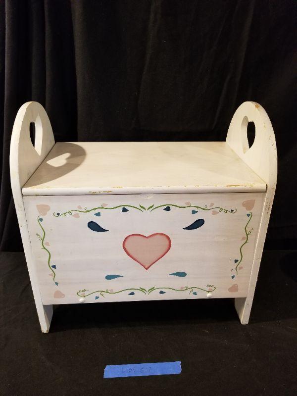 Handpainted Wooden Child's Seat with Storage. 17.5" x 11.75" x 18"