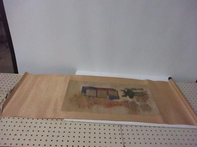 Lot 57 - Vintage Asian Hanging Picture Scroll Snow Branch Flower Calligraphy Weighted