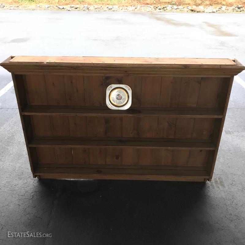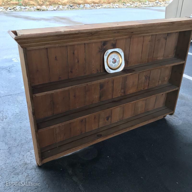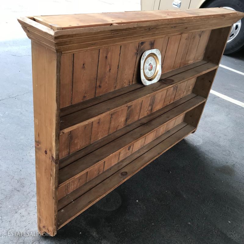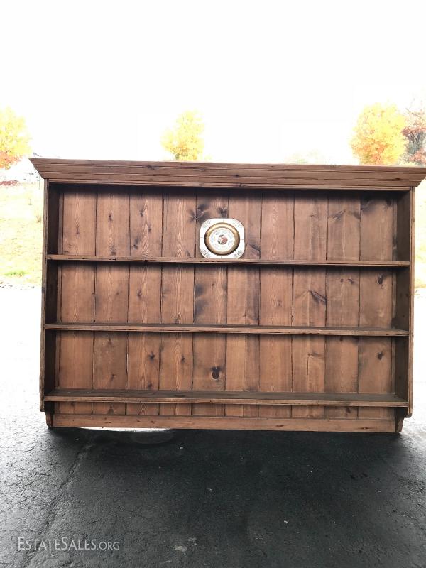 All-wood 3-shelf piece, grooved for plates and mountable, measures 60.5” x 7.5” x4 2”. Plate is not included in this lot. This item is available for local pick up in Asheville, NC only.