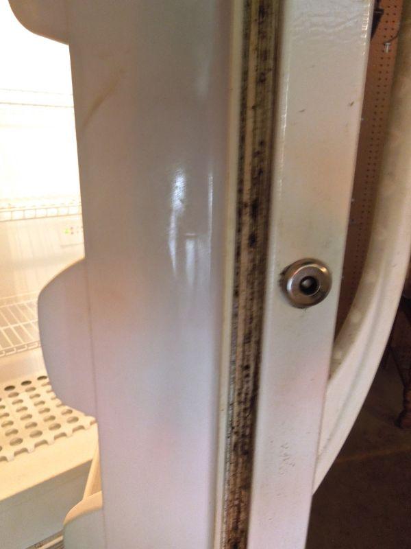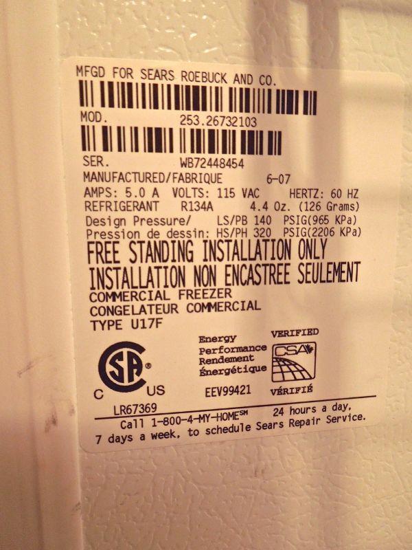 Freezer is in good working condition and cosmetically sound. There is some mildew on the rubber door gasket and the handle is soiled. The freezer has energy saving fetures and comes with the manual. dimensions are 33" w x 67" h x 32" d. No key.