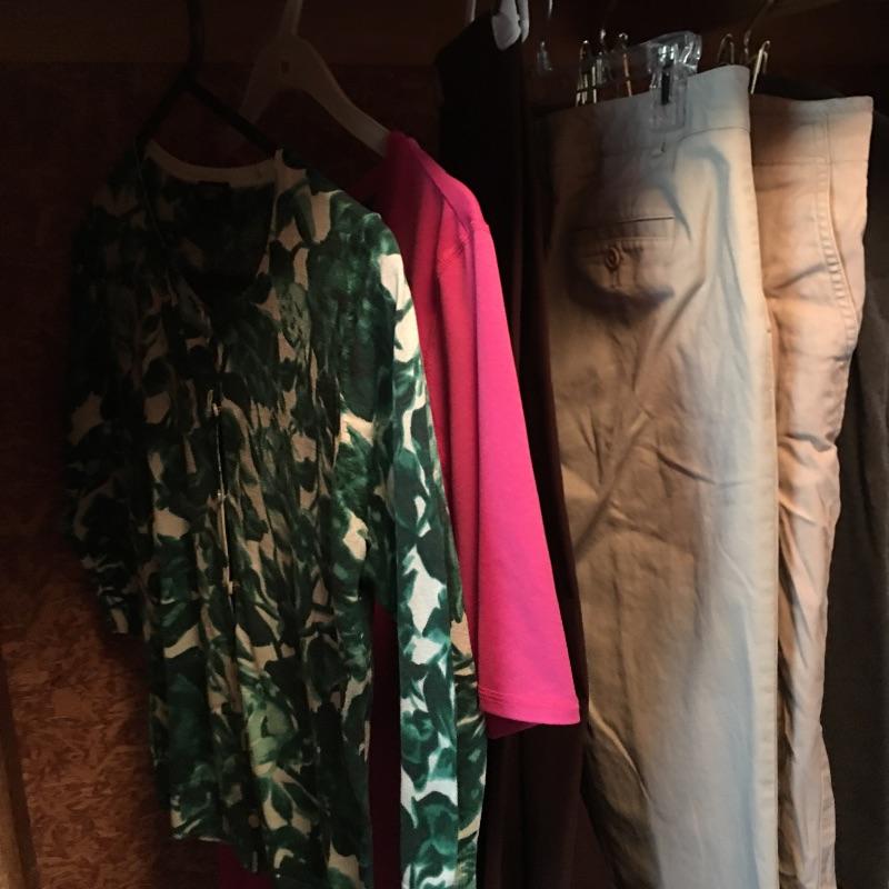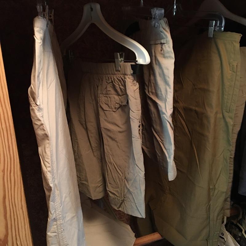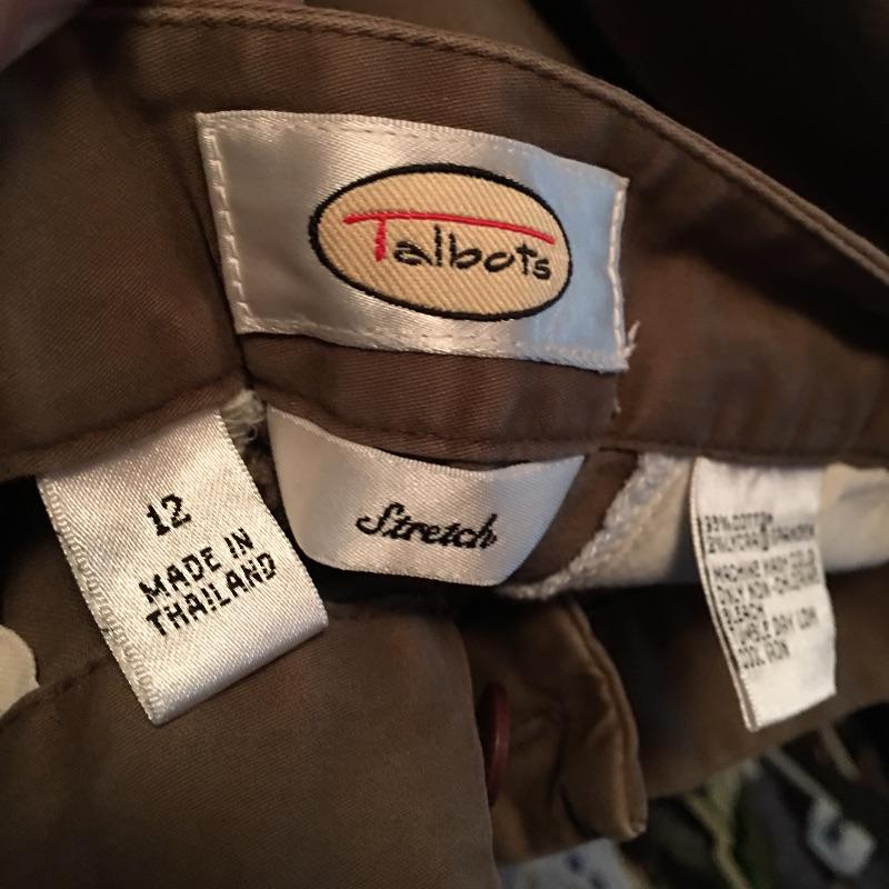Ladies clothing. Lot includes a plethora of ladies clothing by Talbots, Pendleton, New York Company, Travelsmith, L. L. Bean and more. This lot includes sweaters, shirts, trousers, overcoat, shorts, robe, and more. Garments are in differing sizes between 6-12, see pictures.