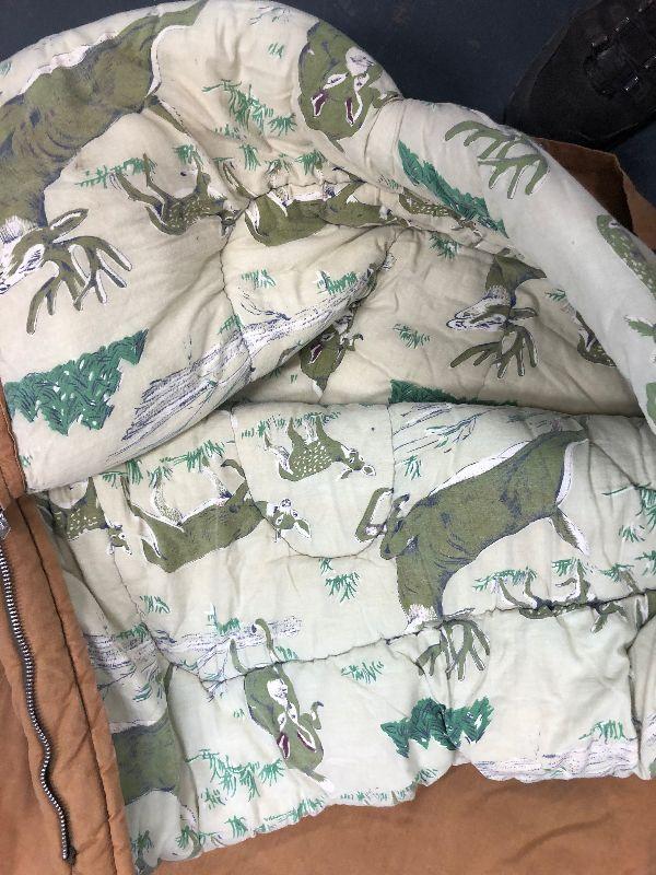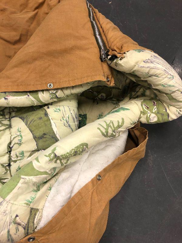 Good Condition used with Green Deer lined Flannel outer canvas like material probably 8 pounds