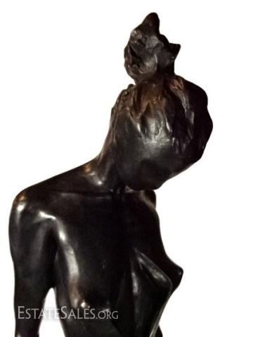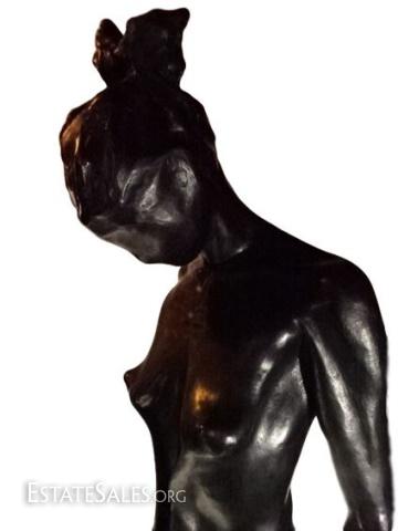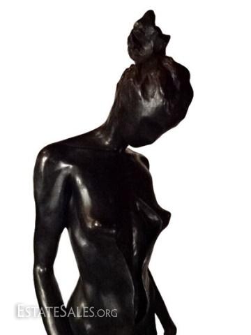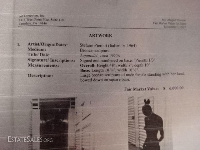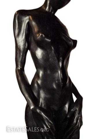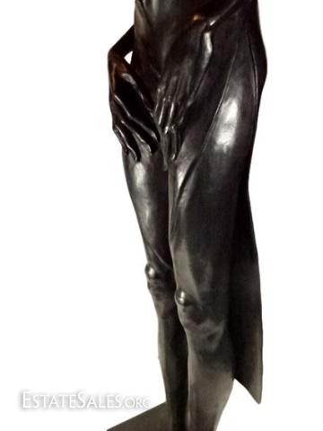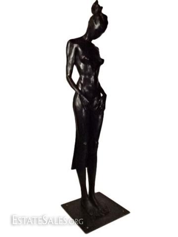 LOT 57: LARGE STEFANO PIEROTTI (ITALIAN, B. 1964) BRONZE SCULPTURE, "TOP MODEL", DEPICTING A STANDING FEMALE WITH BOWED HEAD, LIMITED EDITION, #1 OF ONLY 3 PRODUCED, SIGNED PIEROTTI AND NUMBERED 1/3 ON BASE, EXCELLENT CONDITION, 48"H X 8"W X 10"D, SKU298