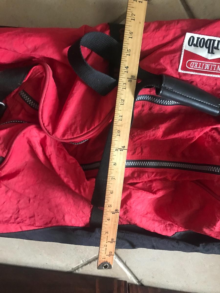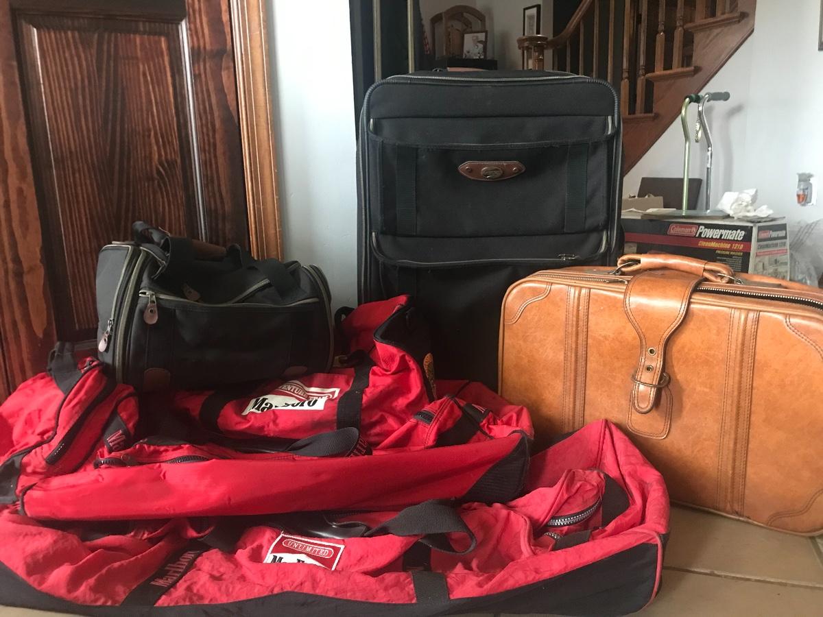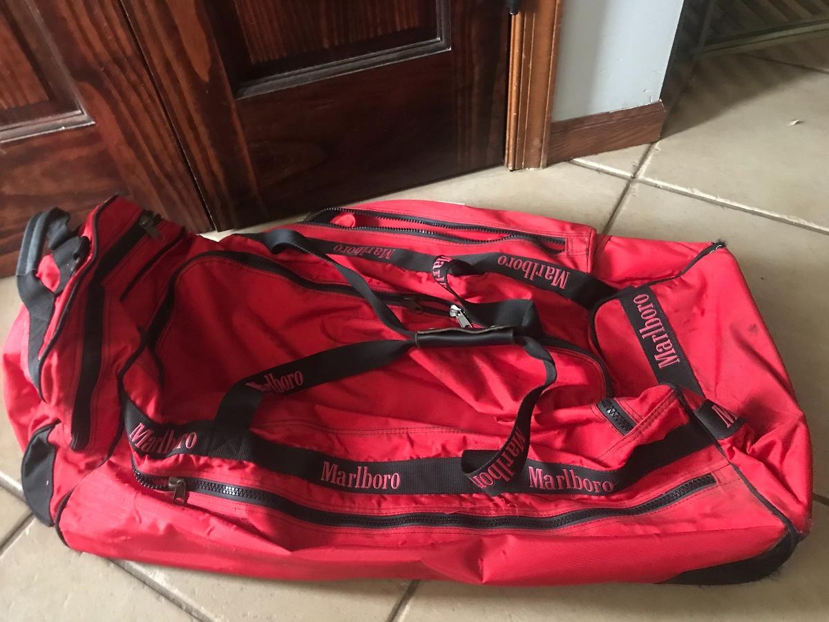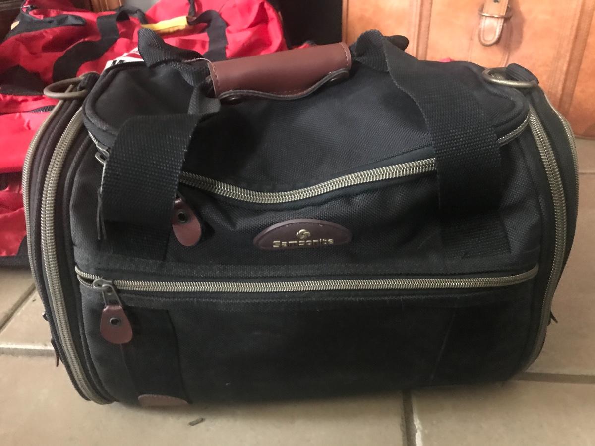 Carry on Samsonite, vintage leather like carry on, Marlboro rolling duffle bags and a vacation size American Tourister. Please see all pictures for content of the lot, condition of the lot, and measurements if taken. Pictures are the best representation of the items listed and items are untested unless indicated in description. Thank you for looking and have fun bidding!