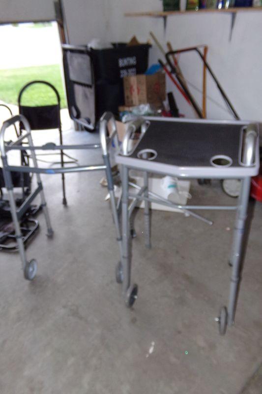 2 WALKERS, BED RAILS, TOILET LIFT AND MORE