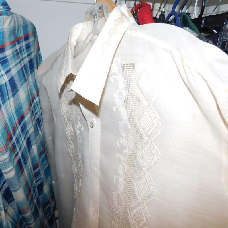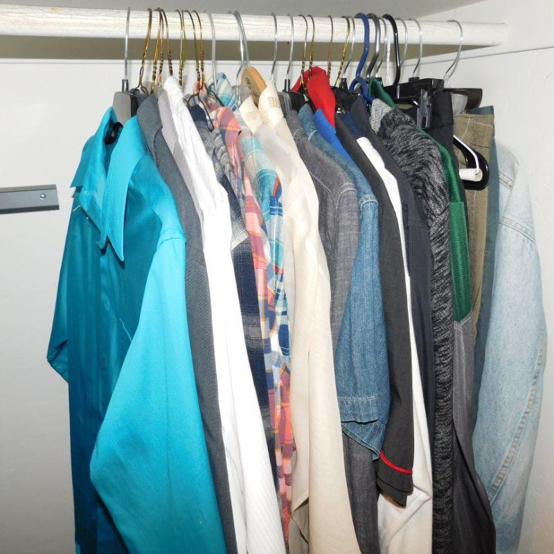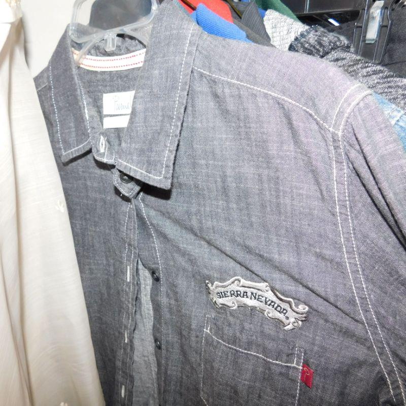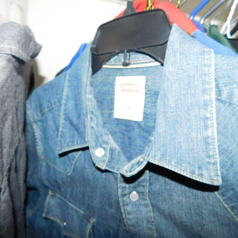 Lot 57 men’s clothing including including a denim jacket approximately 10 button up shirts and miscellaneous clothing