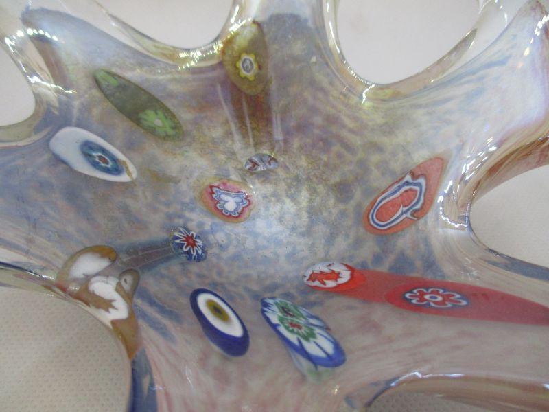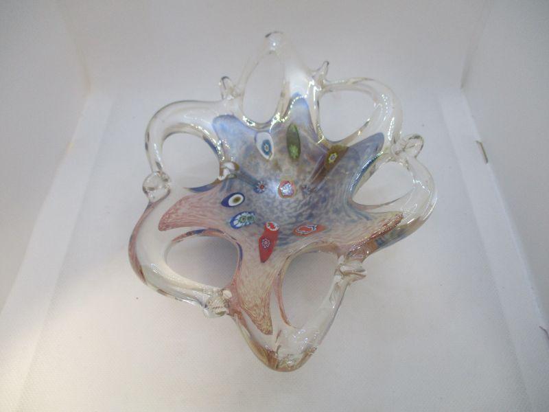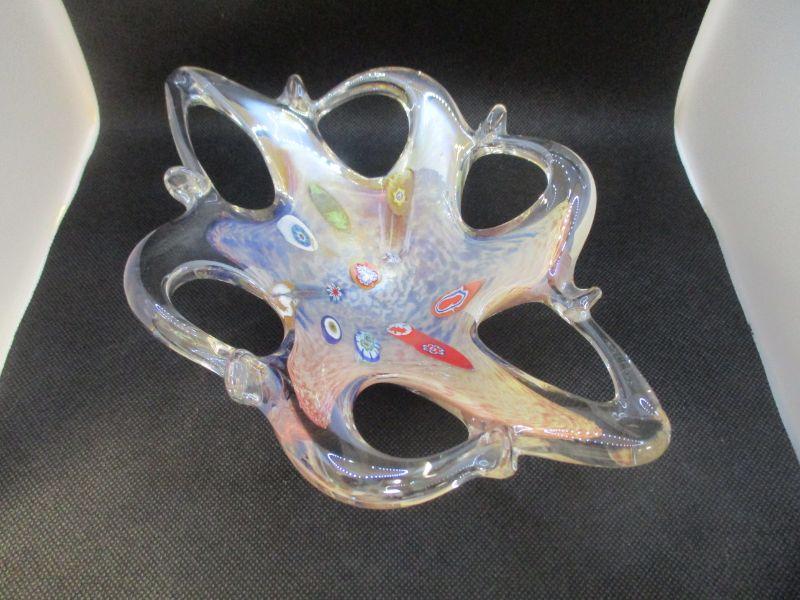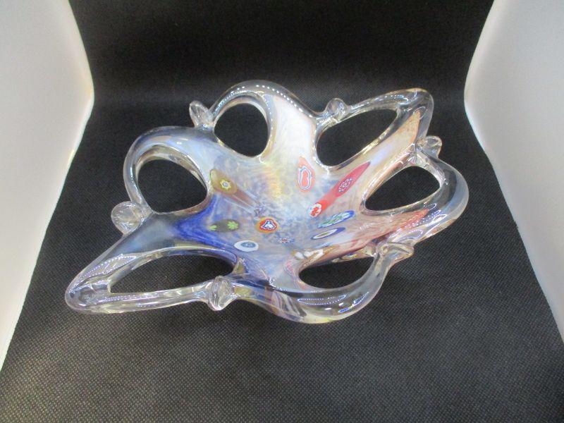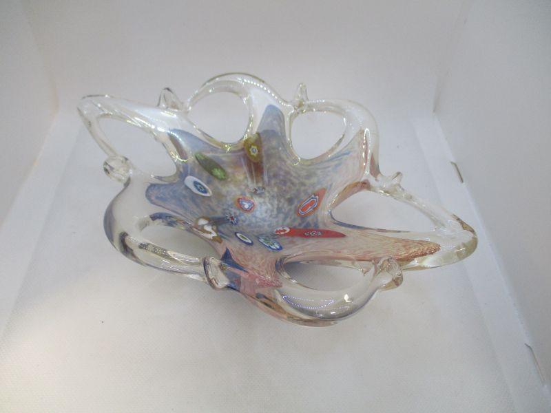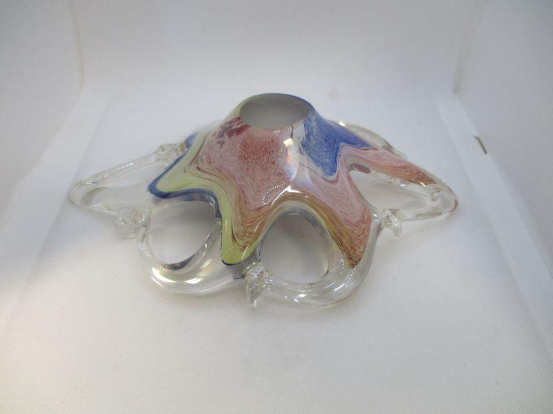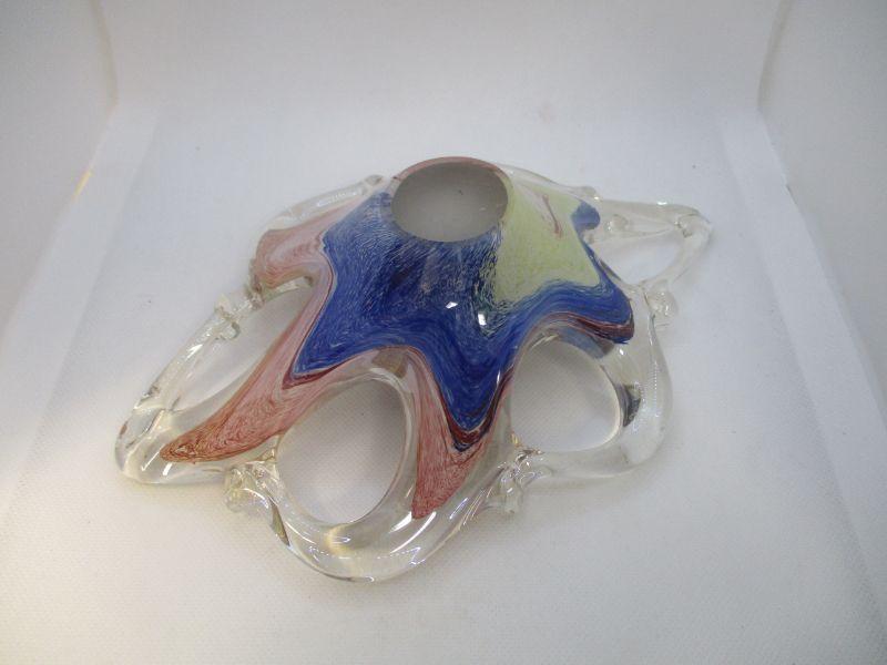 I don't know if this is authentic Murano glass so please bid accordingly. It has the style of Murano glass and is definitely a unique piece. It is 9.5" long x 6.25" wide. I didn't find any issues.