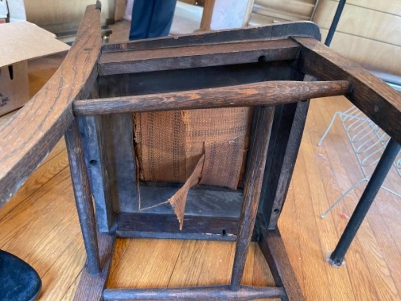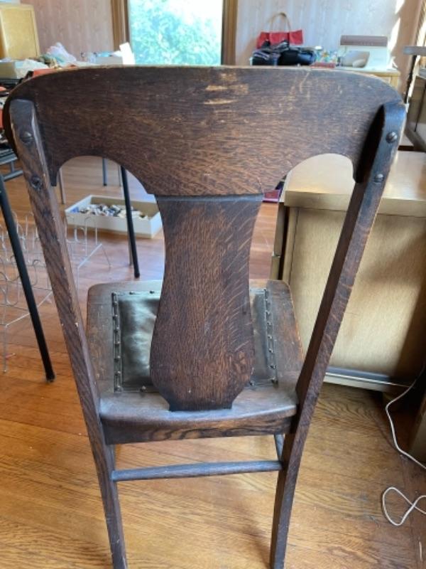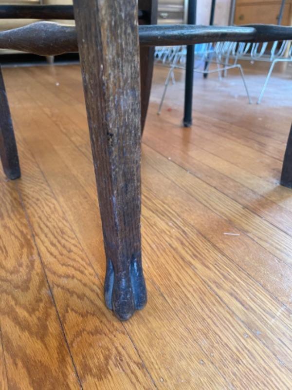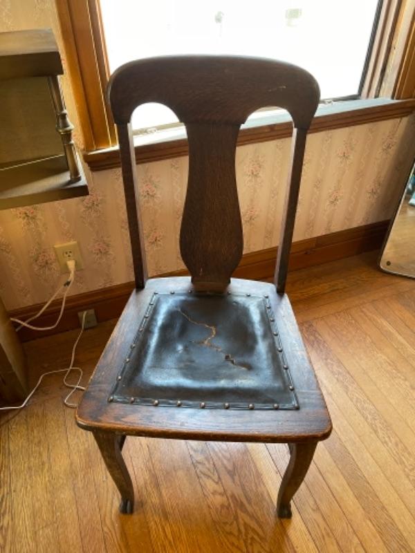 Lot 57. Oak chair with leather seat and claw feet (1920s)--$10