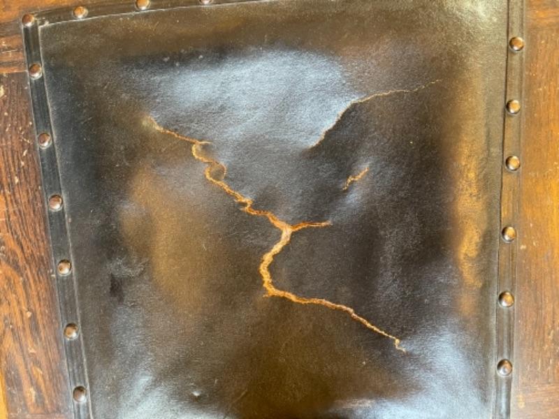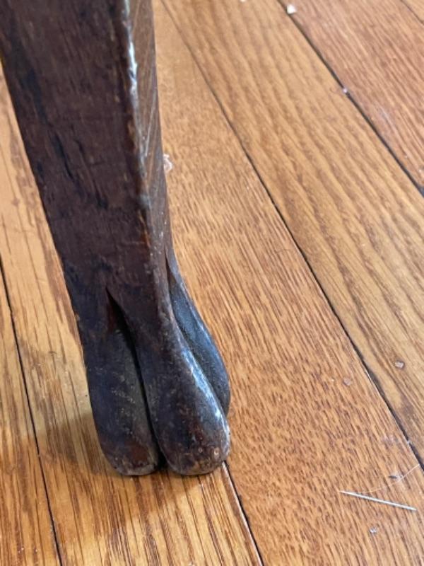 Lot 57. Oak chair with leather seat and claw feet (1920s)--Was $25 - - Now $10