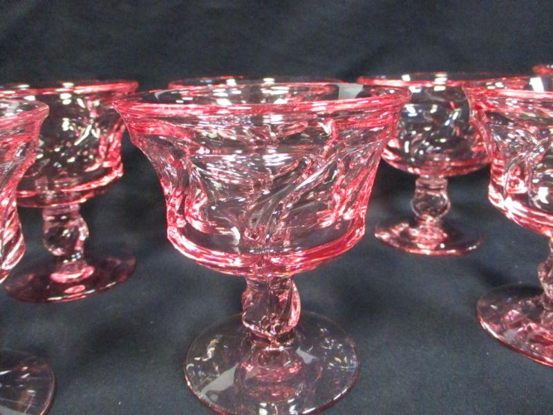 Lot 57 - Pink Crystal Swirl Design Dessert Glasses