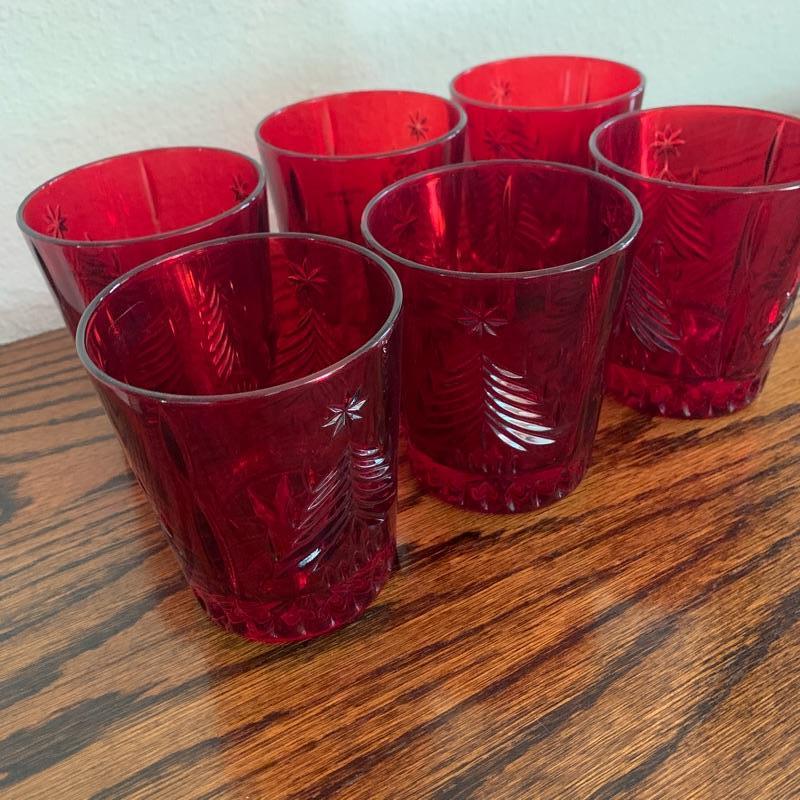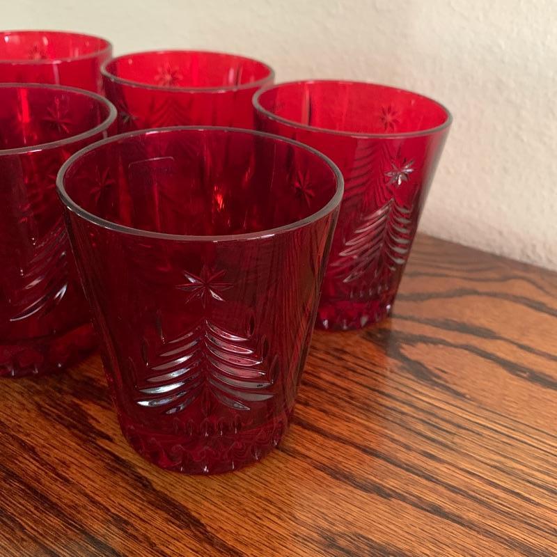Red Ruby Glass Tumbler set of 6 Christmas Tree Design