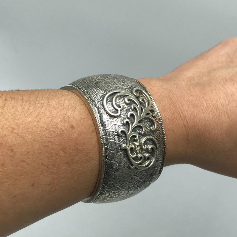 Stunning statement piece with intricate designs throughout. Silpada sterling silver cuff bracelet almost 1.75” wide with snug fit. See photos.