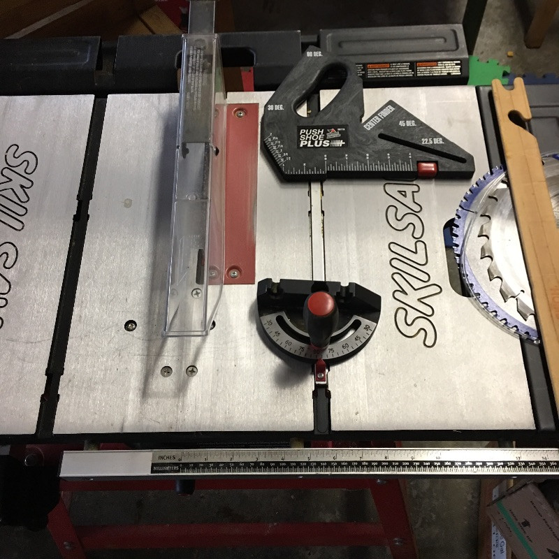 Saw looks in great shape and is sure to be of great use in your workshop. Table saw measures 26.5” x 34.5” x 34”.