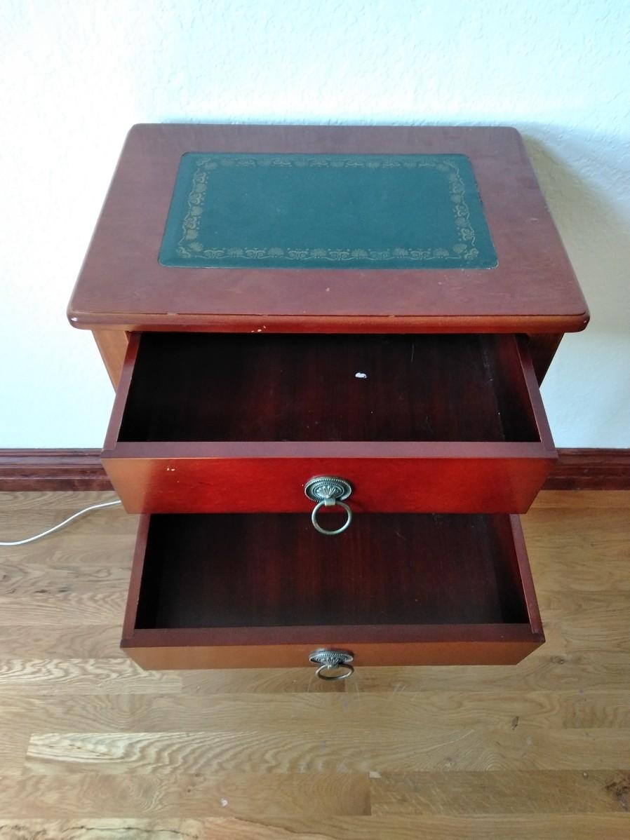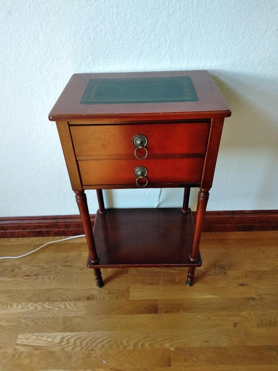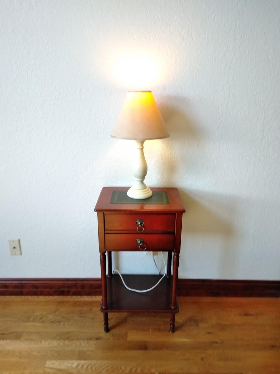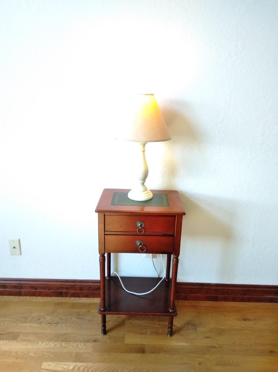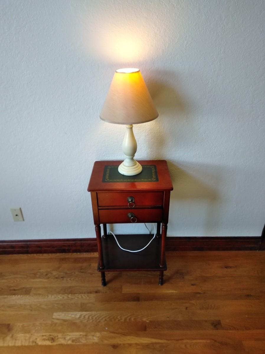 SMALL DRAWERED TABLE WITH LAMP 29" X 16.5" X 12"