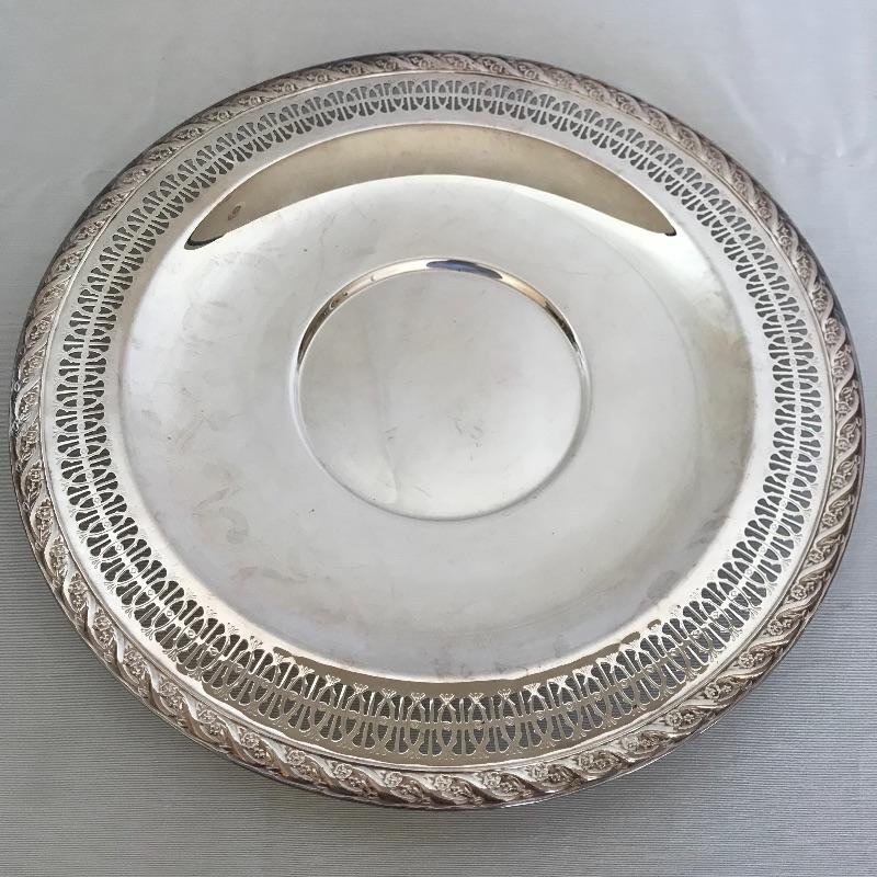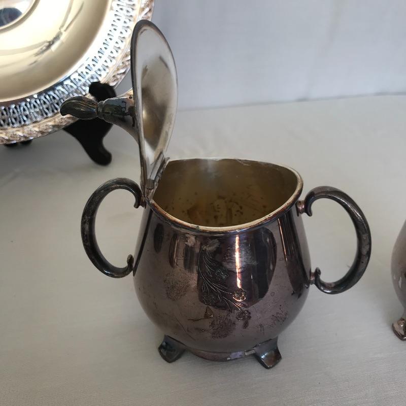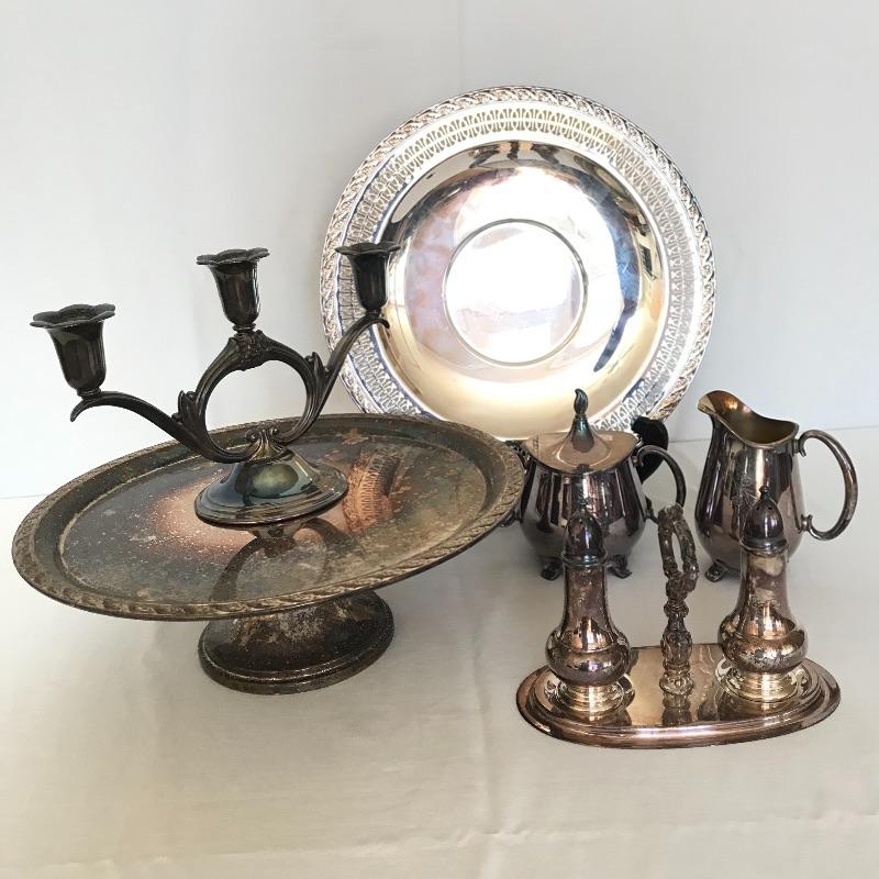Lovely floral accented pieces from WM Rogers & Son, 1847 Rogers Bros, and more. Collection includes candelabra, 12” round serving platter, salt and pepper shaker/caddy set, sugar and cream dishes and a 12.25”d x 4.25”h platter. A little silver cleaner would make a world of difference. Shipping available.