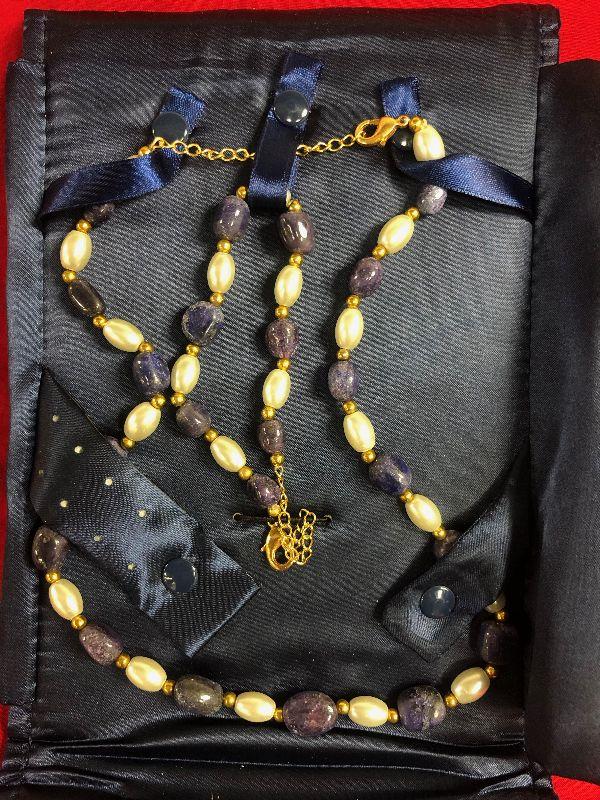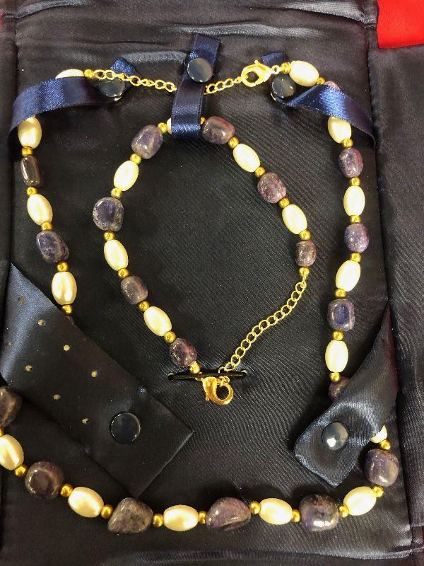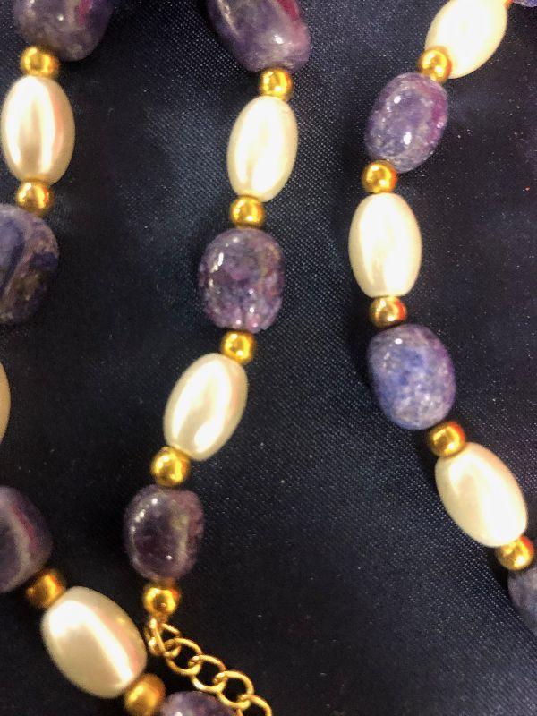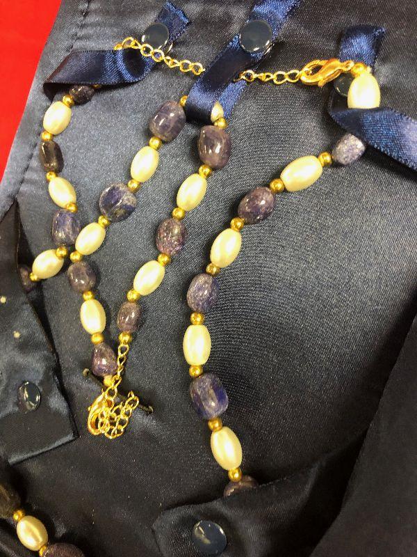 Lot 57 - Stauer - choker and bracelet - purple and pearl stones