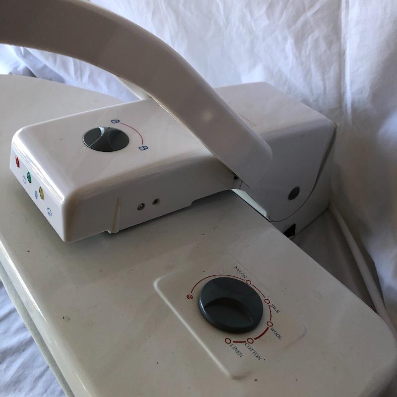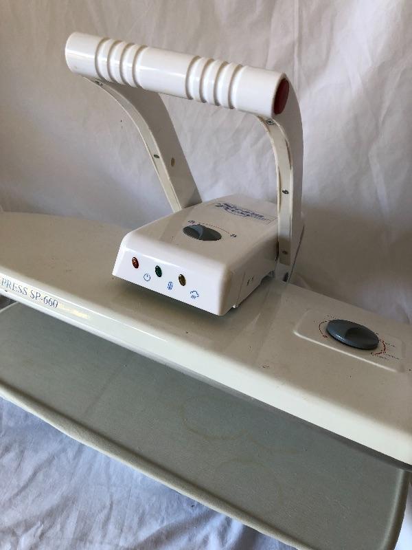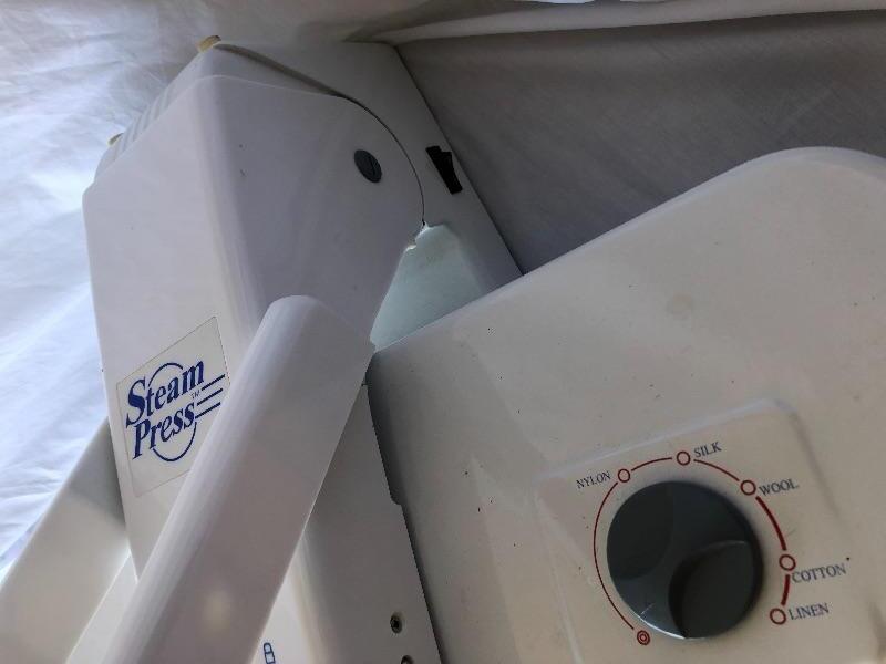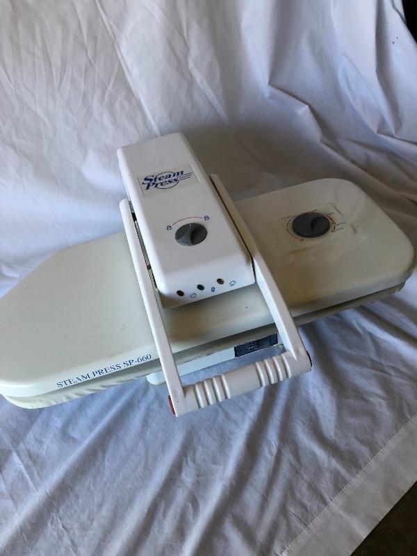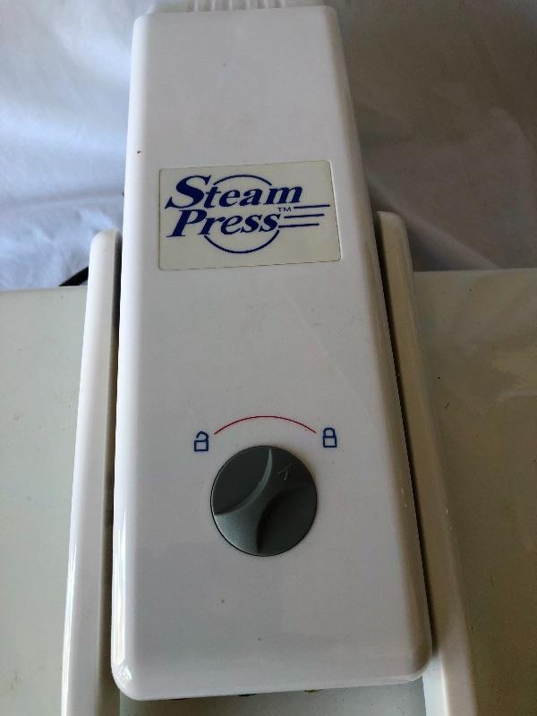 Do you like your clothes with a professional dry cleaning crease? Your clothes will sport a dry cleaning look with the use of this easy to use steamer! Powered on when tested and measures 23”across and 21" with handle closed/locked, 8.5”high. Local pick up only.
