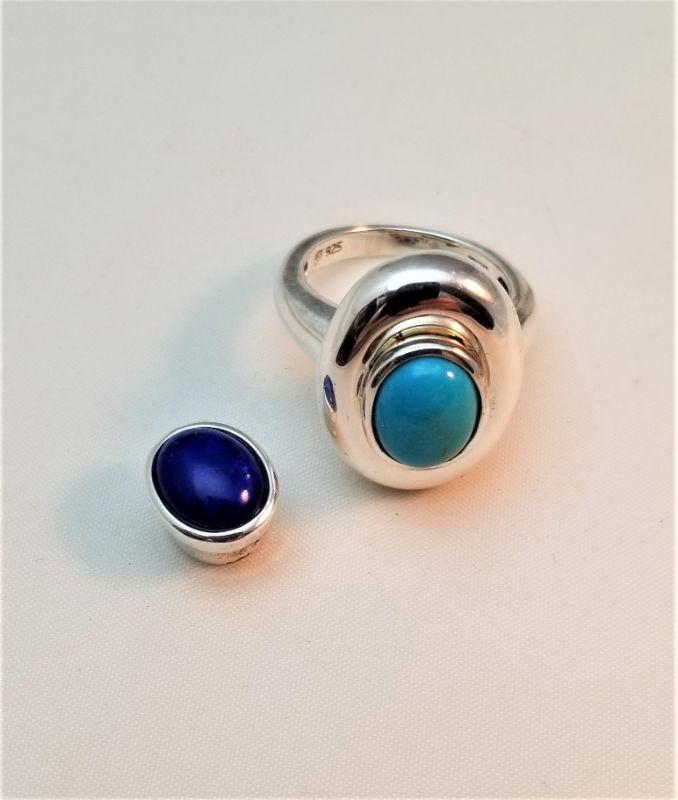 Lot #57  Sterling Silver Ring with interchangeable Turquoise or Lapis stone