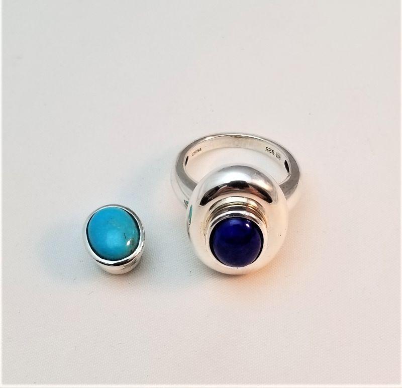 Lot #57 Sterling Silver Ring with interchangeable Turquoise or Lapis stone