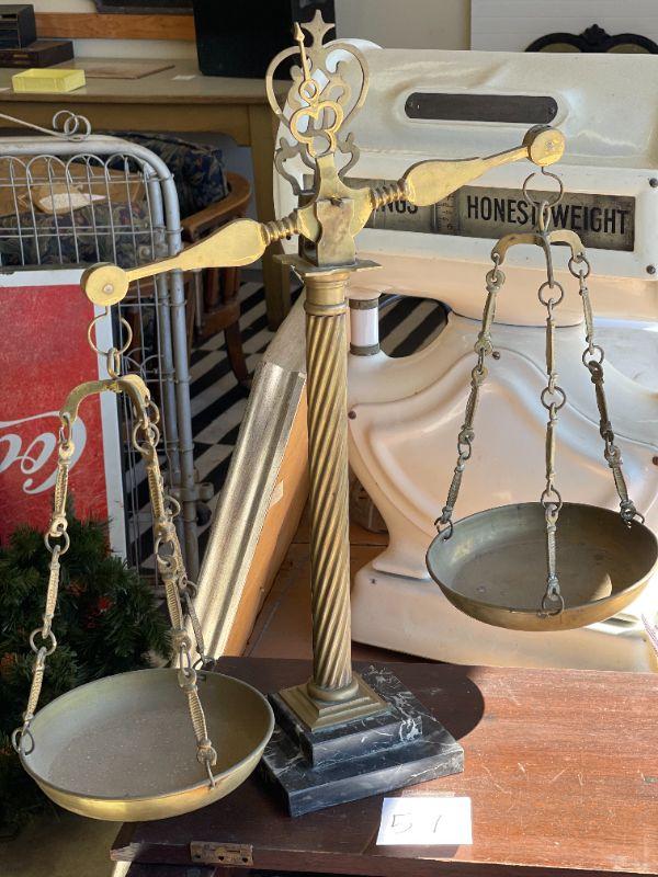 Lot 57 Vintage Brass/Marble Balance Scale 22"