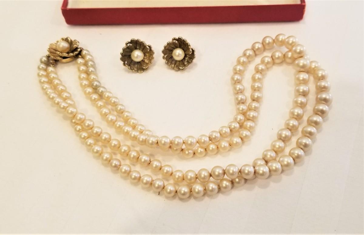 Lot #57 Vintage DELTAH Costume Pearl set - necklace/earrings - original box