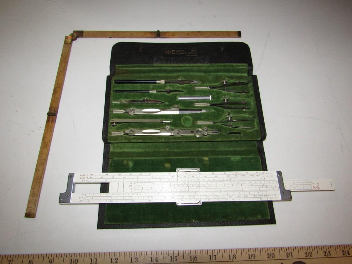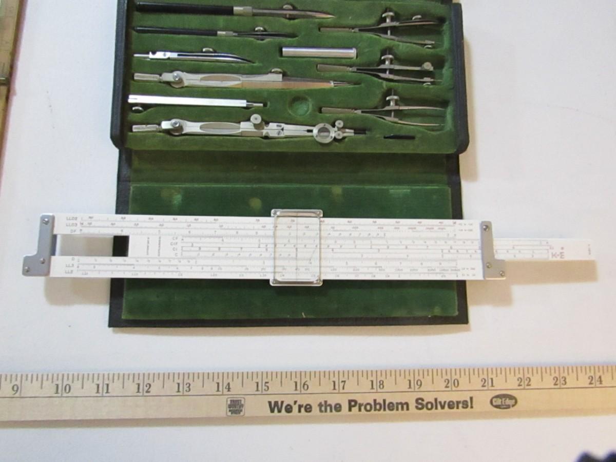 WHITE SLIDE RULER AND DRAFTING TOOLS IN CASE ARE MADE BY KEUFFEL & ESSER