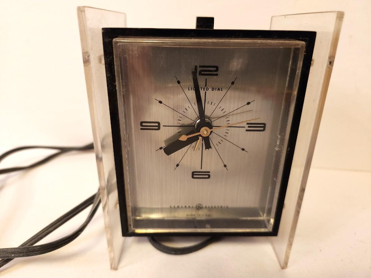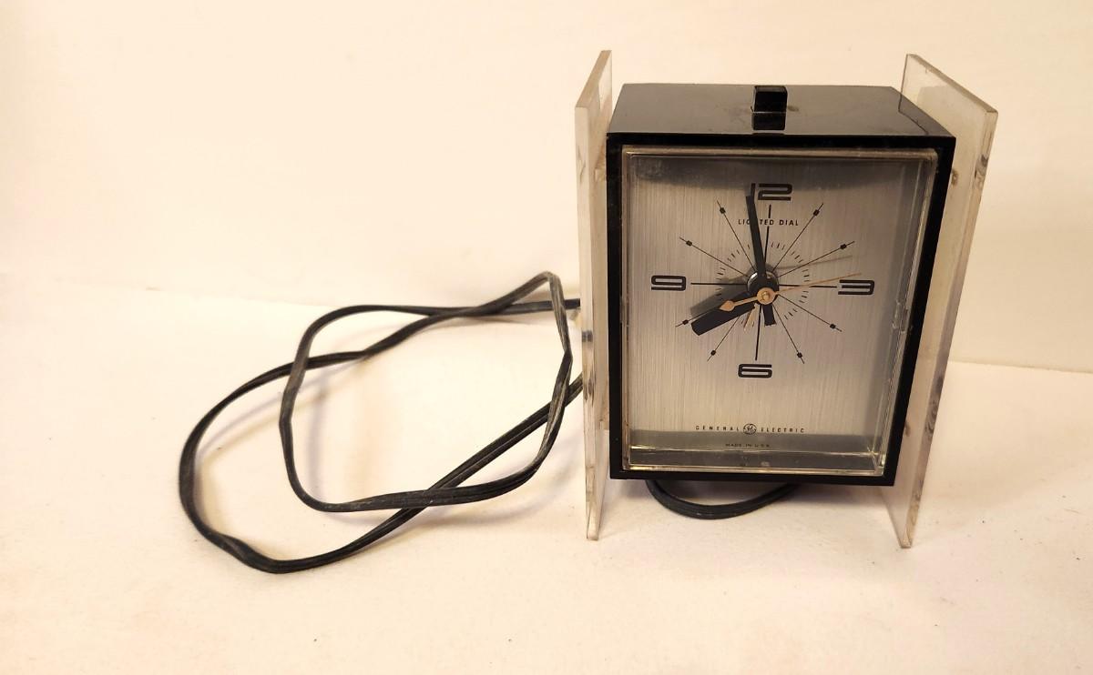 This clock has a great mid-century look - GE electrical clock with lighted dial - works.