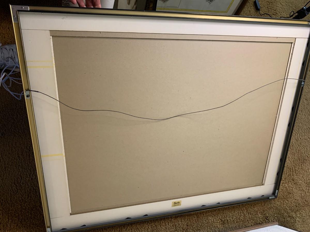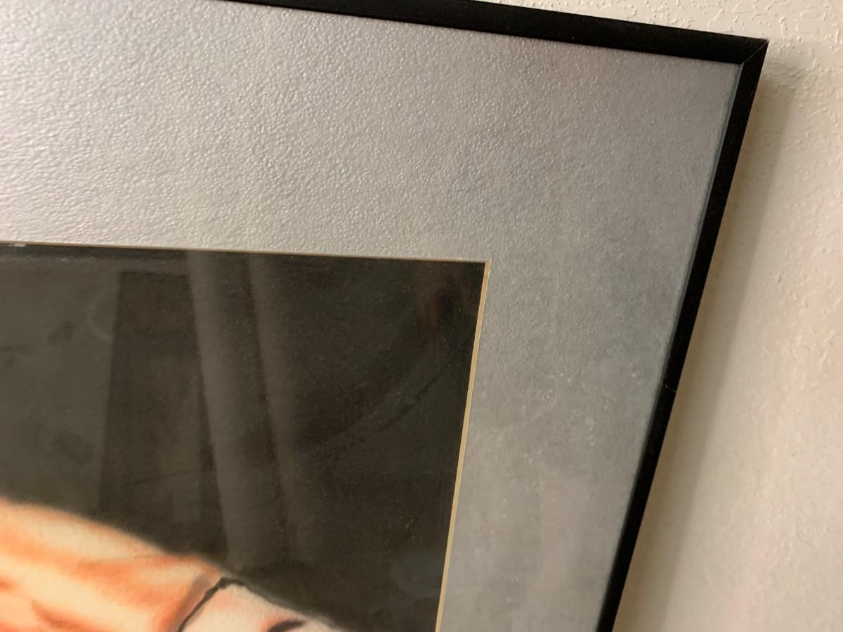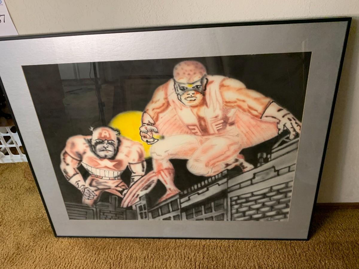 Super hero drawing, framed and matted 36x28.5" Unsigned.