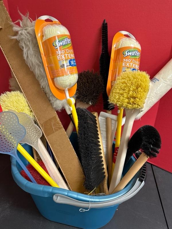 Lot 570 dusters, brooms and scrub brushes