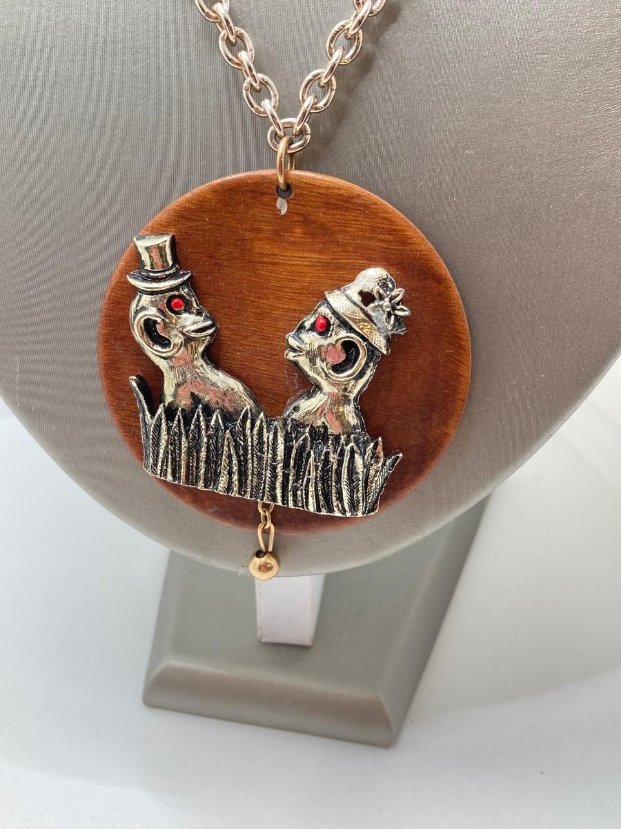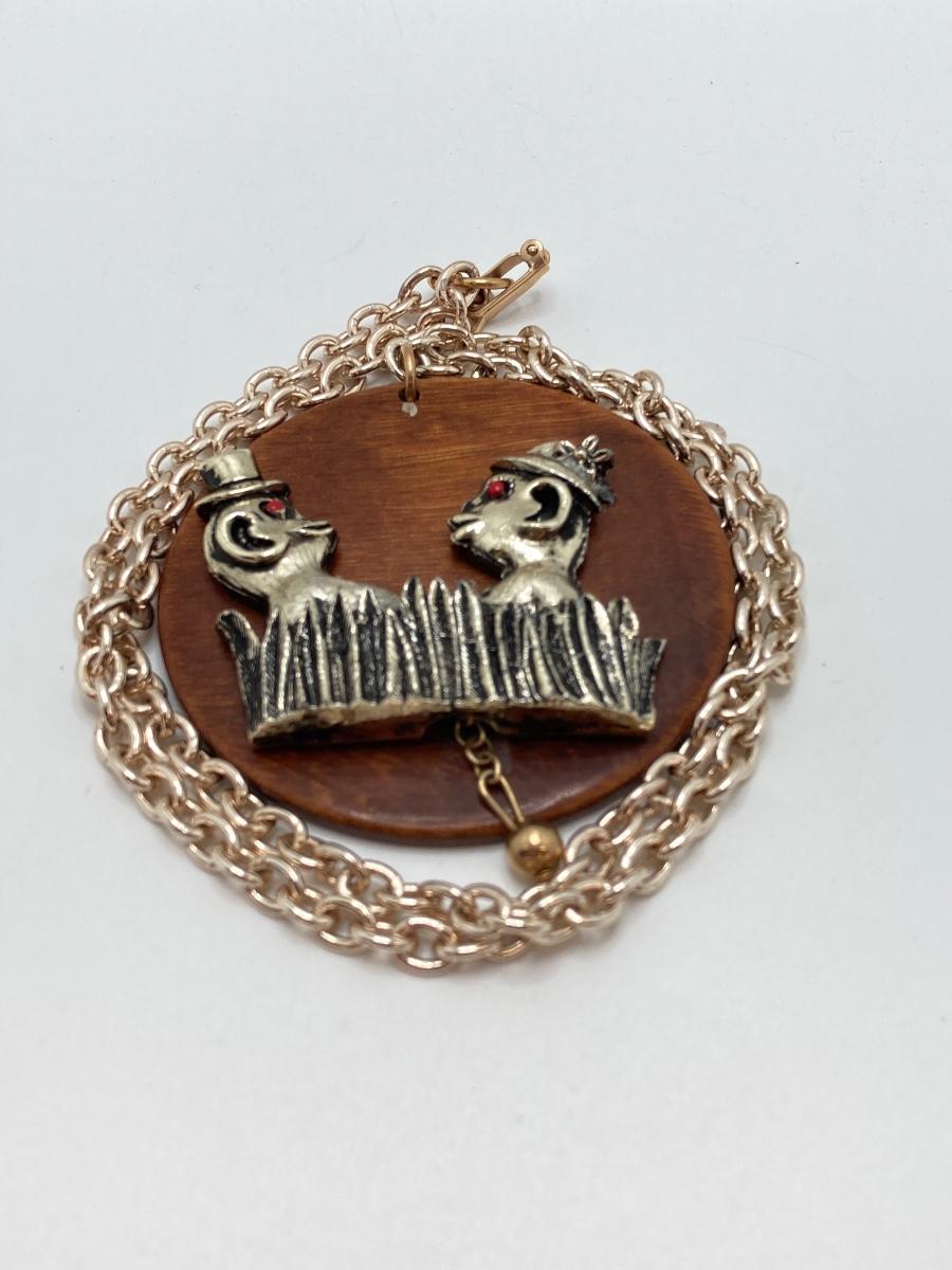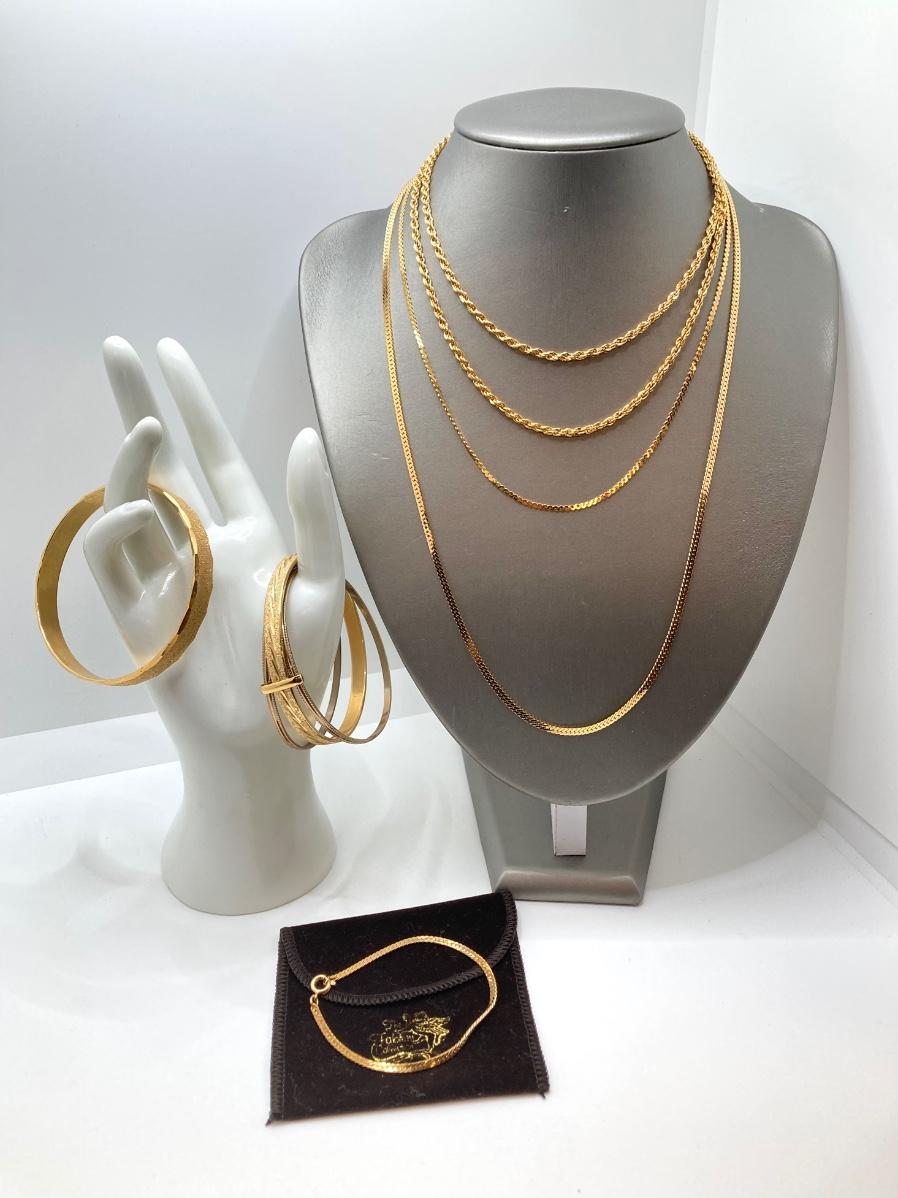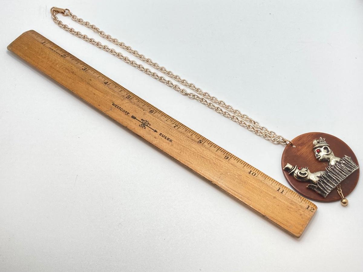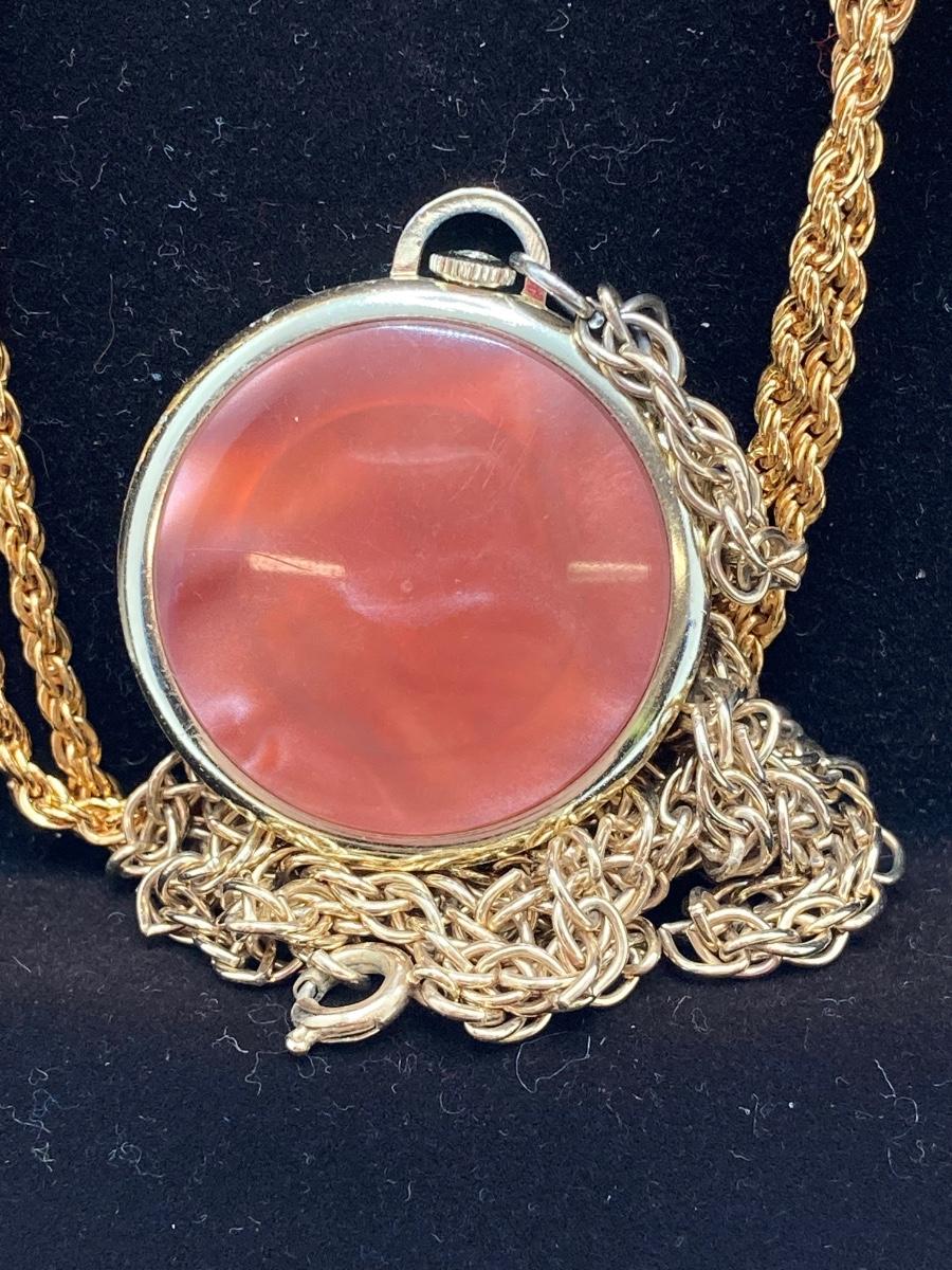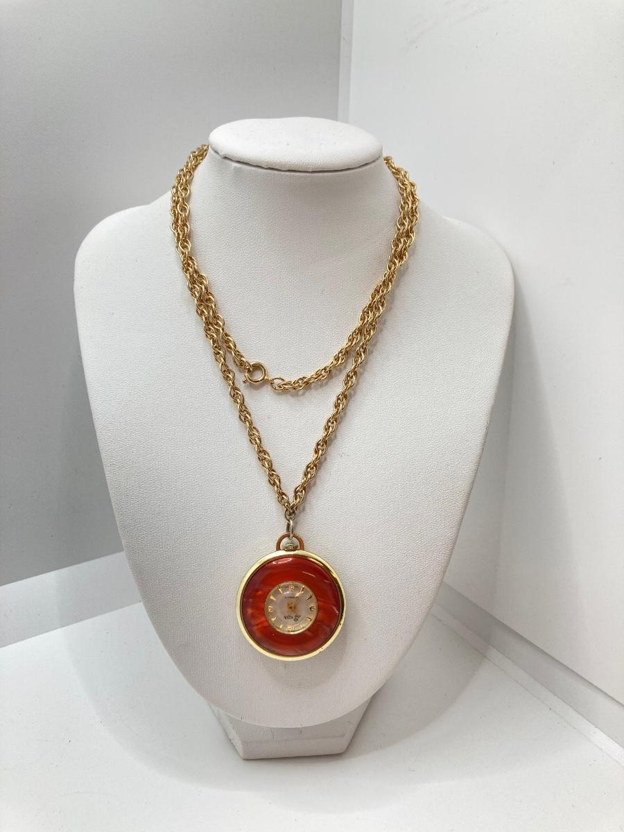 LOT 571: Vintage Jewelry Collection - Lady Nelson Antimagnetic Swiss Made Necklace Watch, Monkey Couple Medallion Necklace and Gold Tone Chains & Bracelets