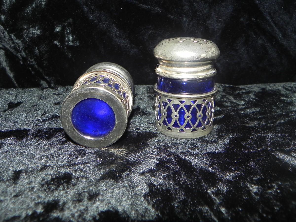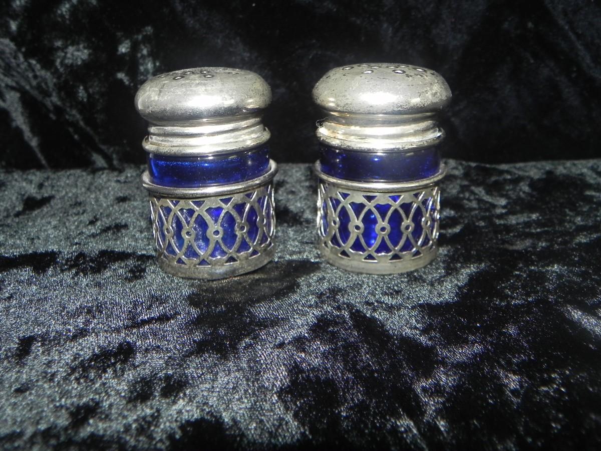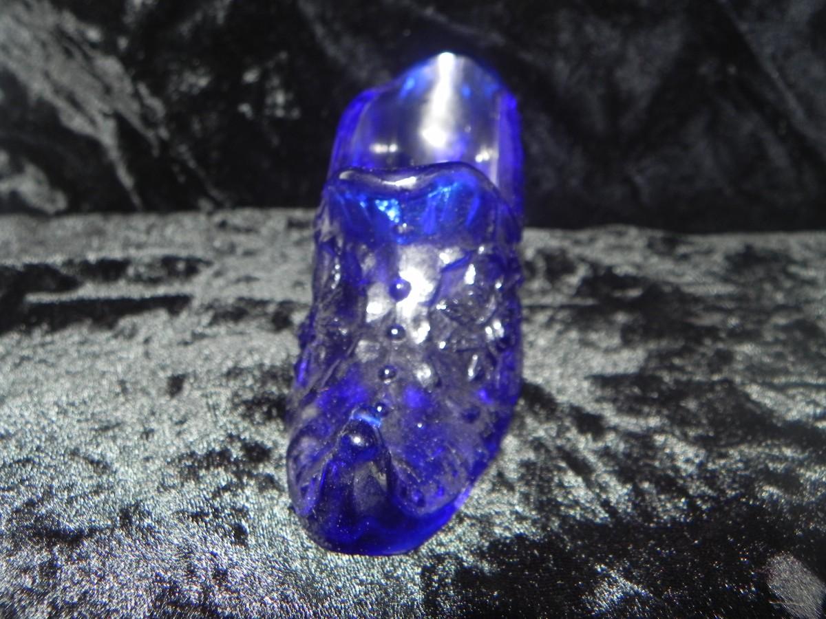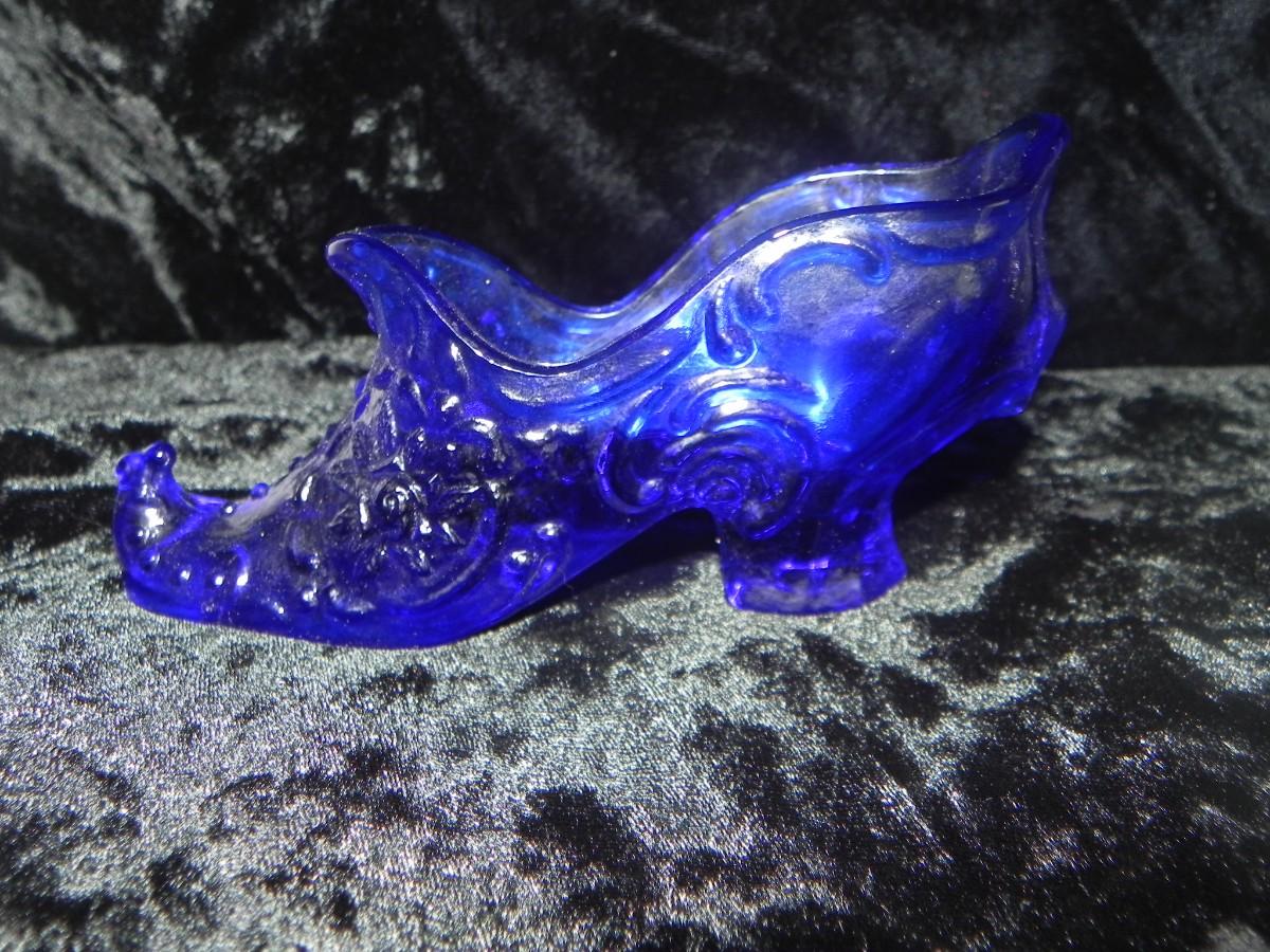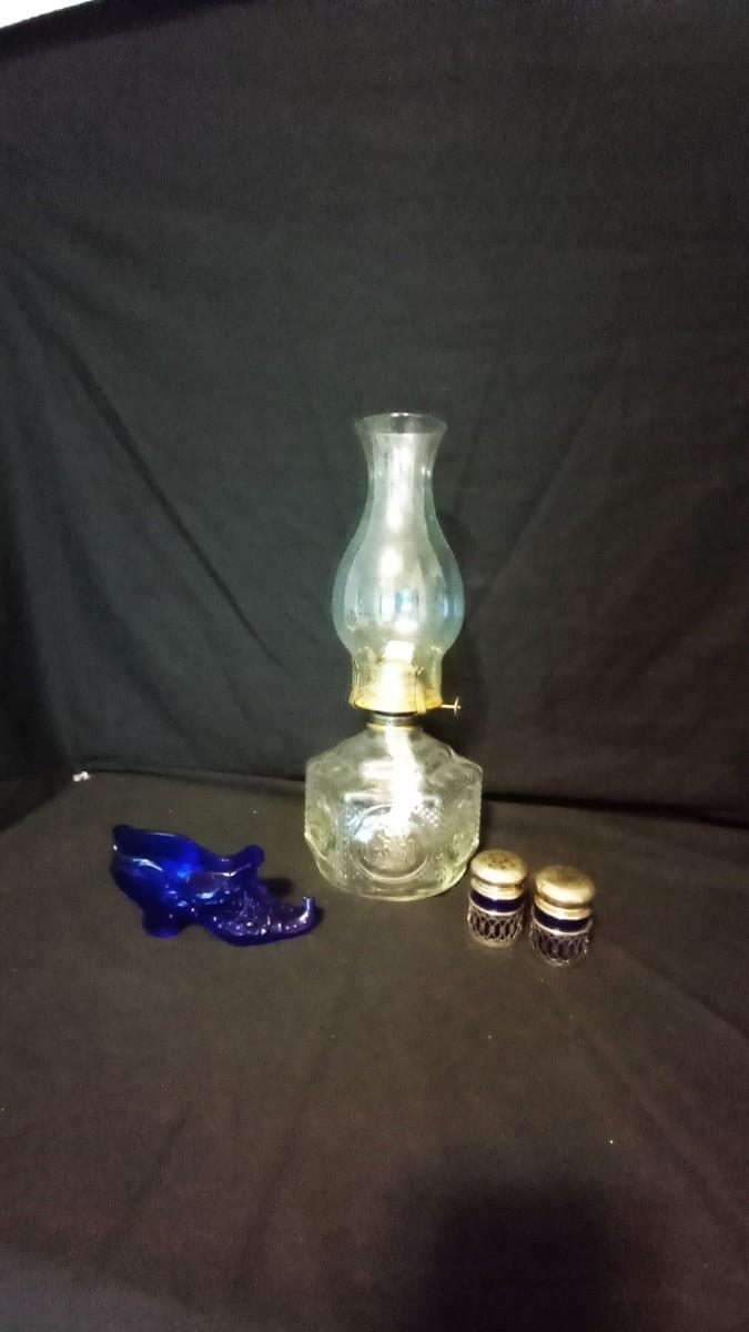 FENTON COLBOLT BLUE GLASS SHOE-COLBOLT BLUE SALT & PEPPER SHAKERS - HURRICAN OIL LAMP-