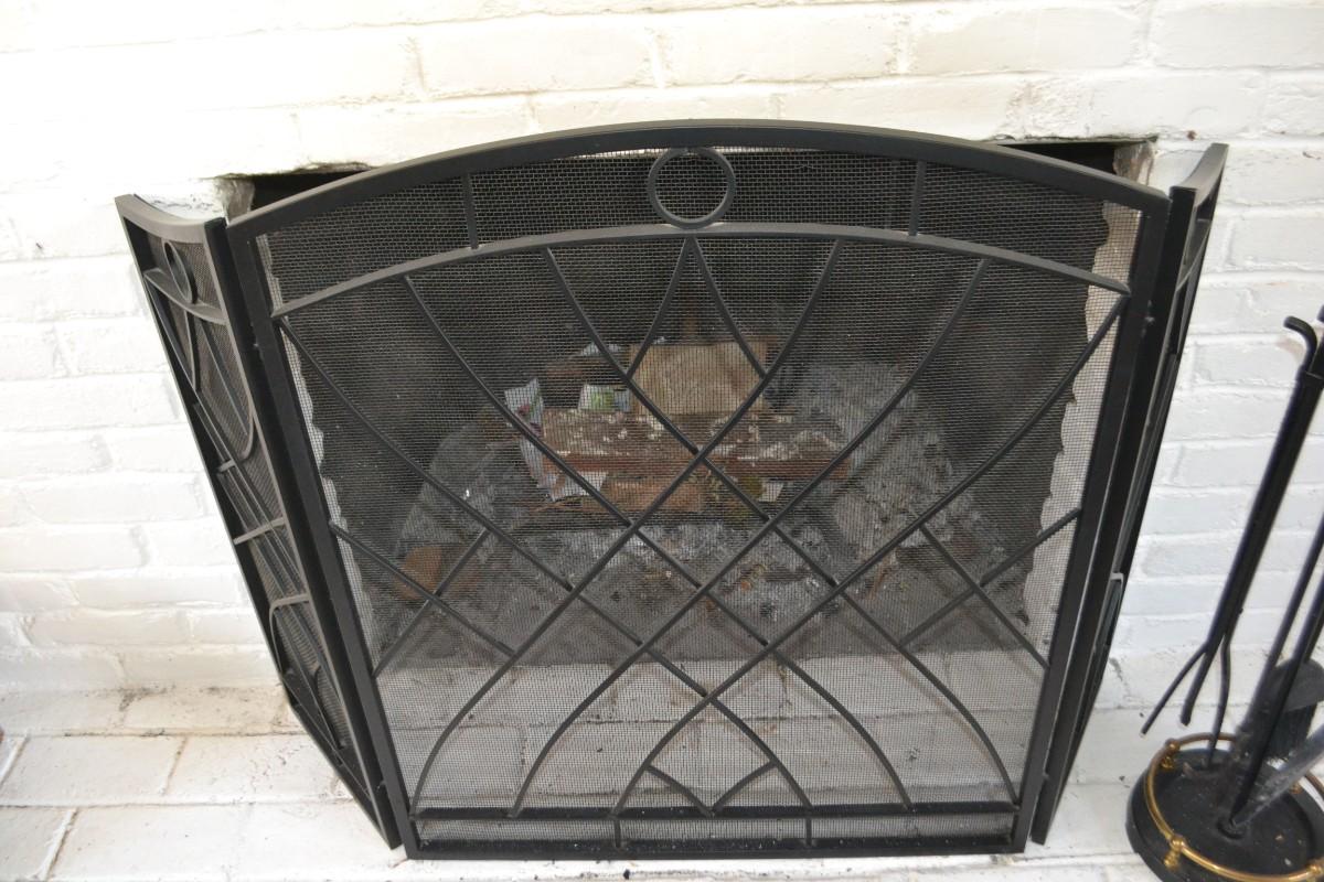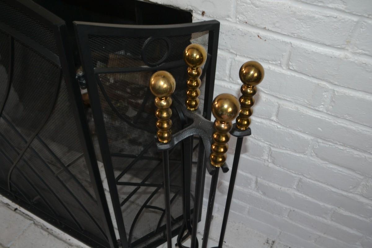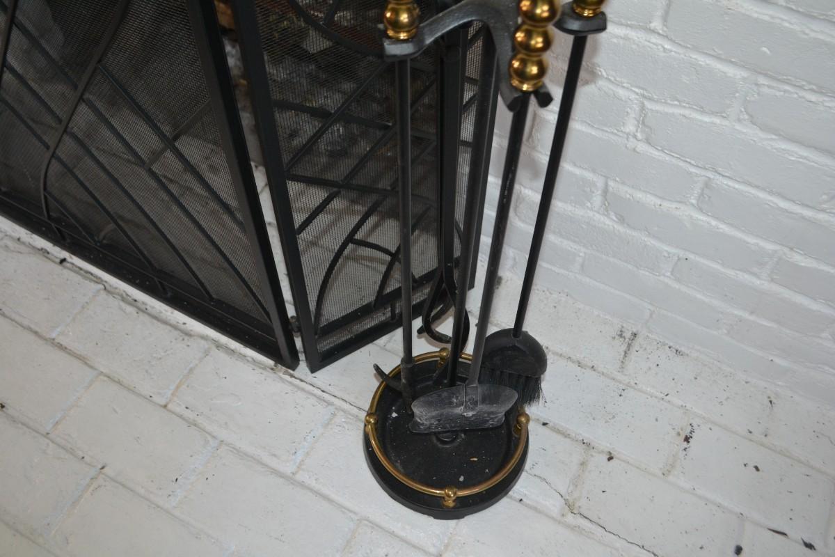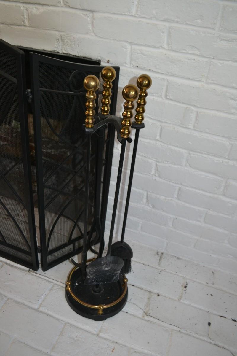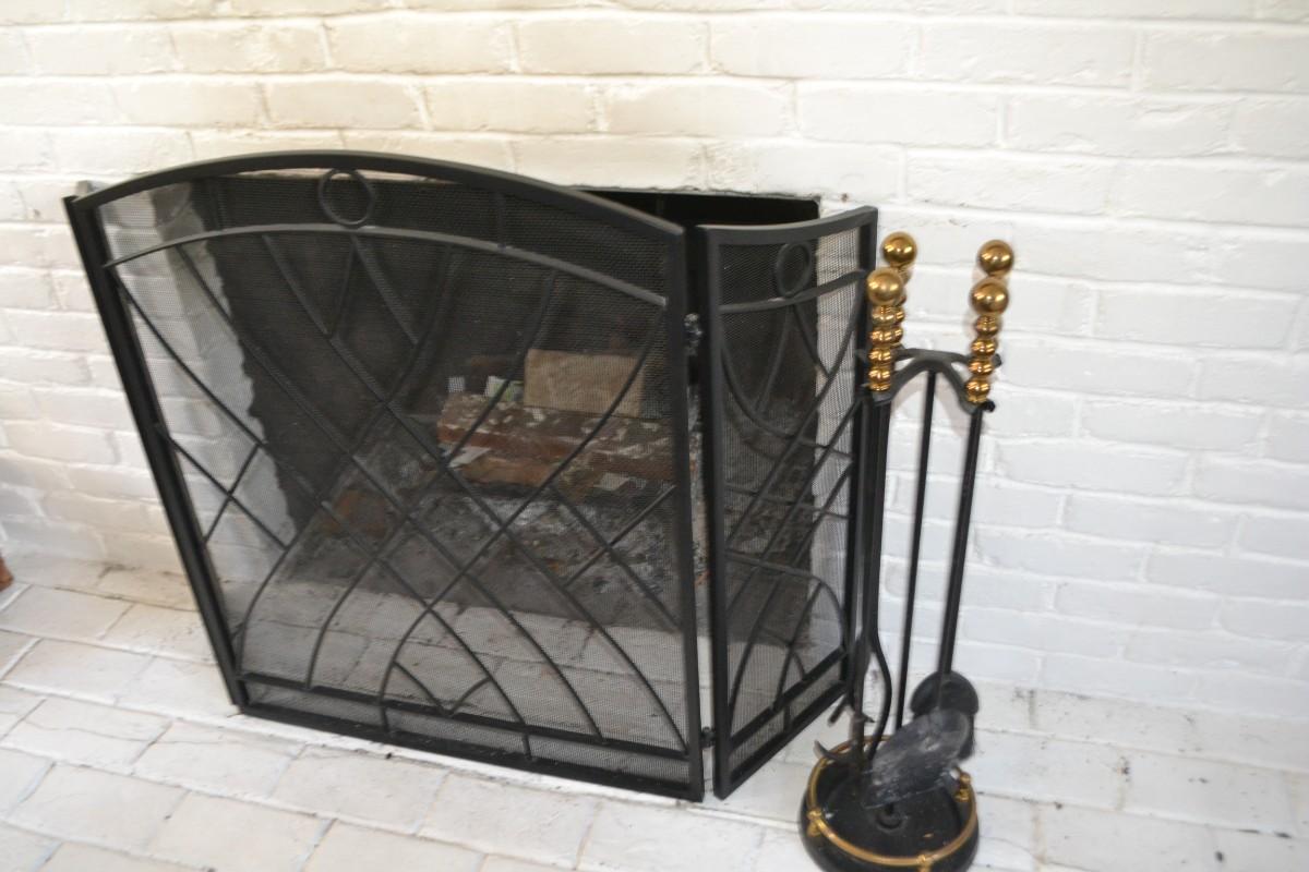 LOT 572. FIRE SCREEN AND FIREPLACE TOOLS
