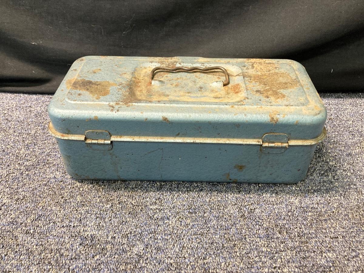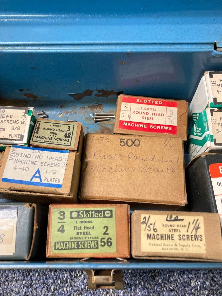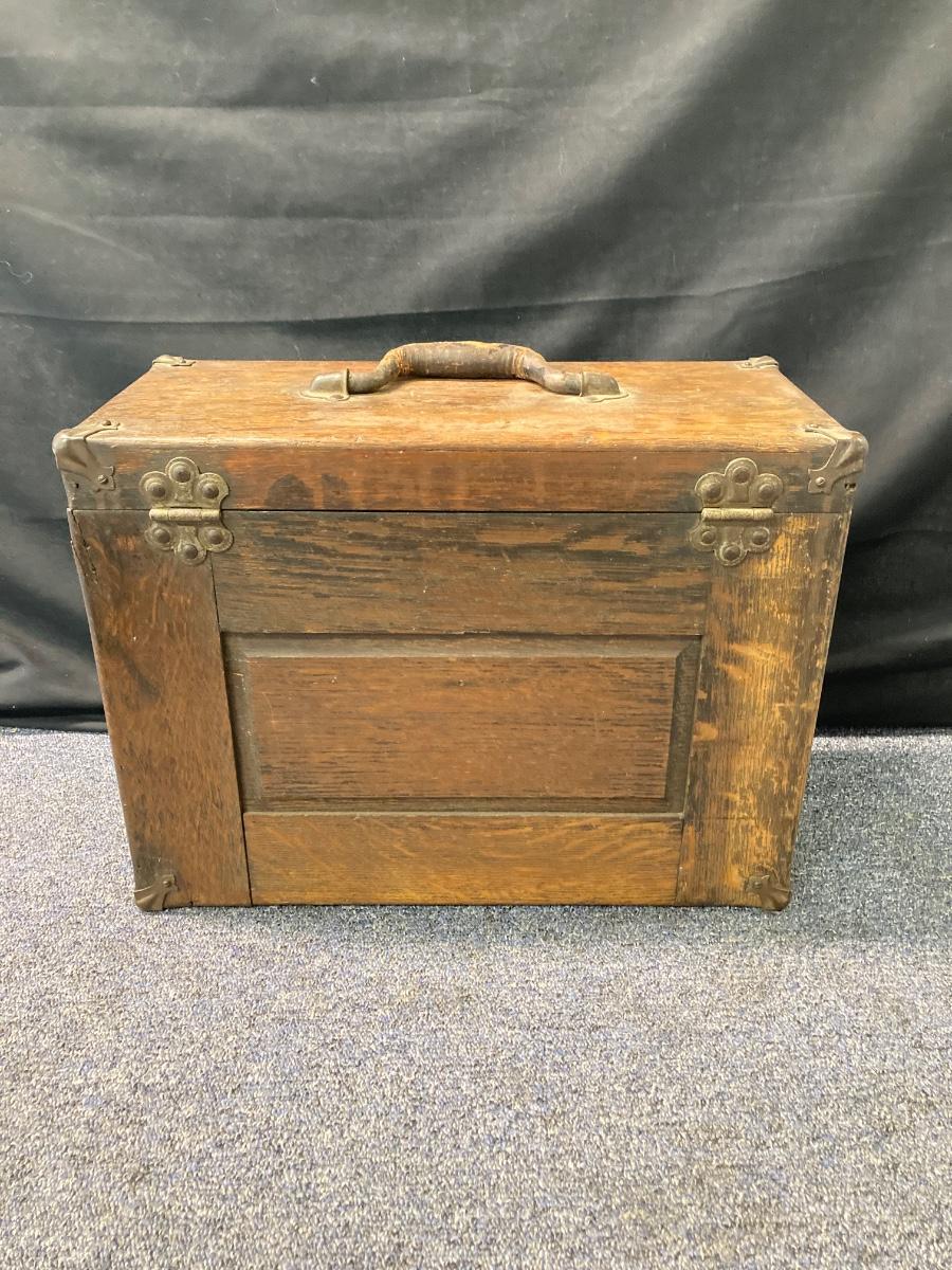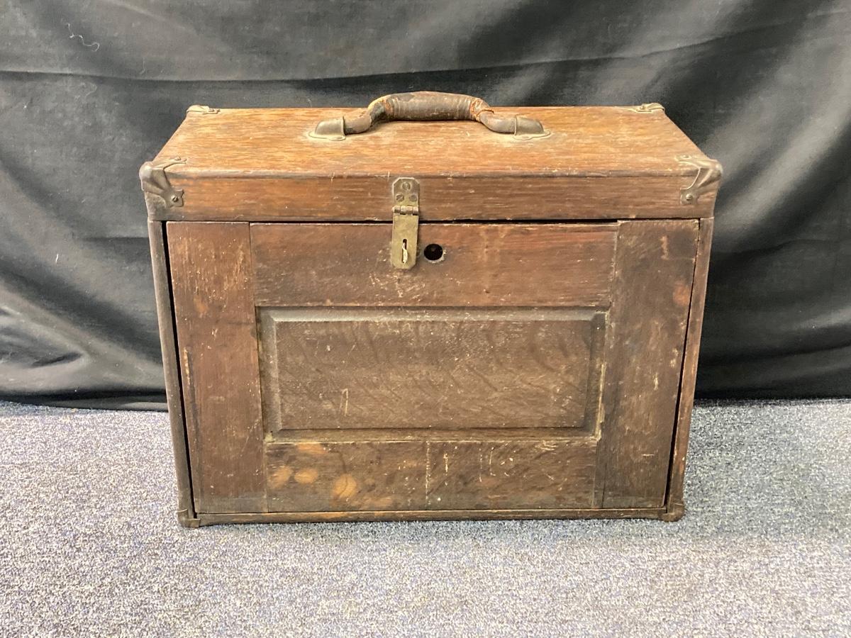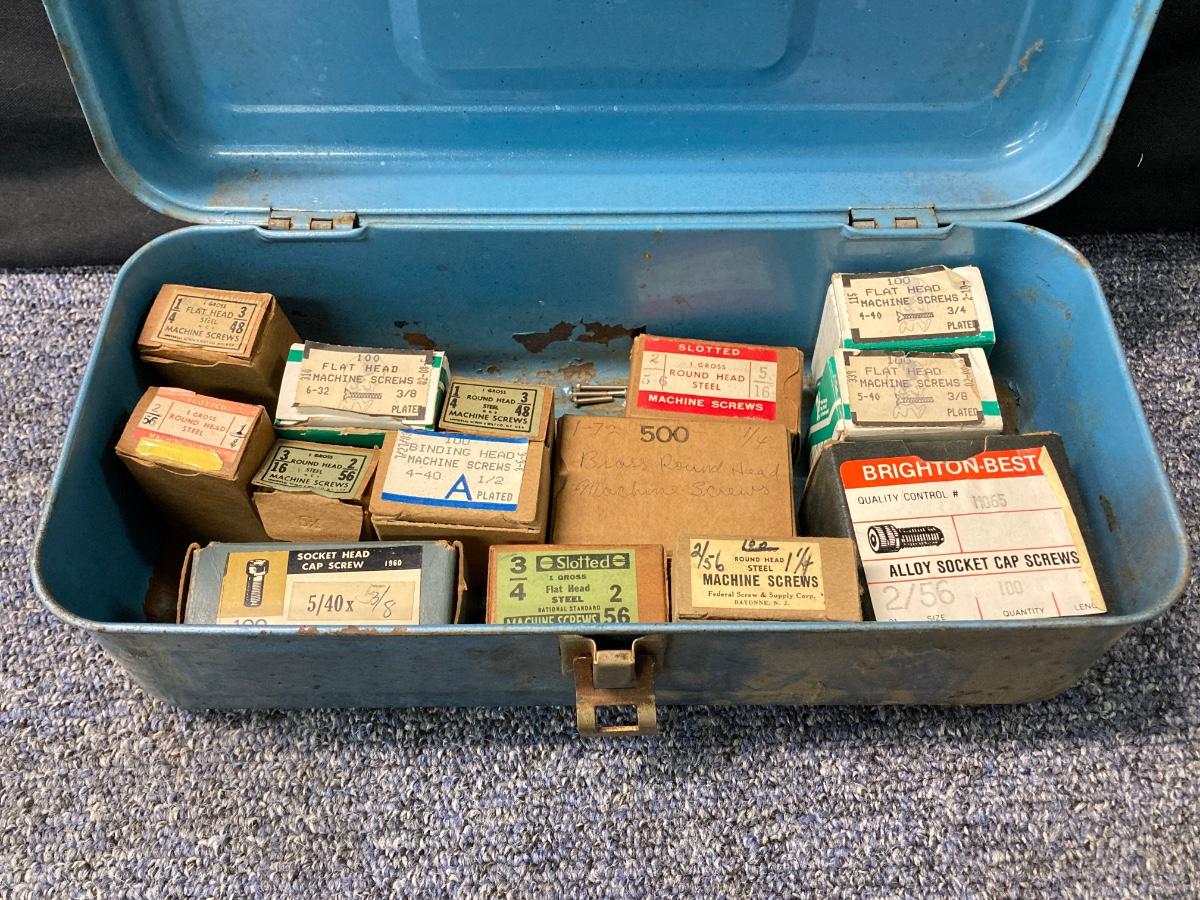 LOT 574: Vintage Union Wooden Tool Chest, Tools, Clock Repair Parts, Small Metal Toolbox with Hardware