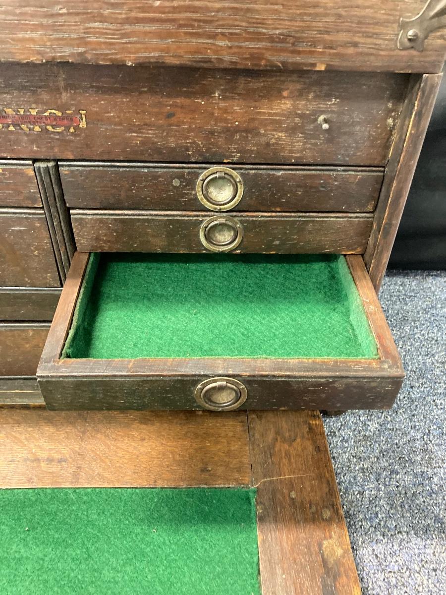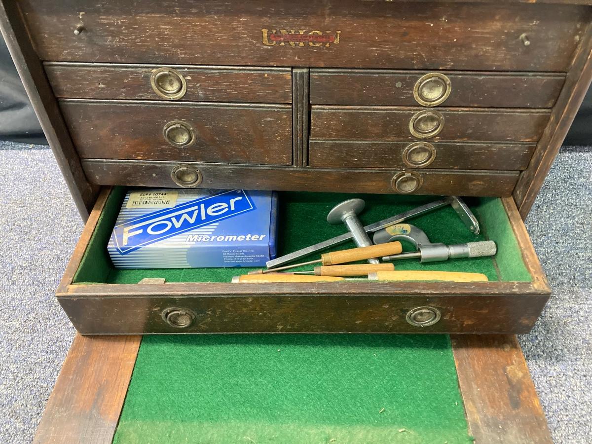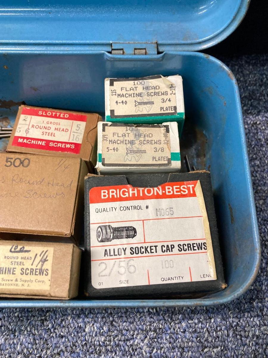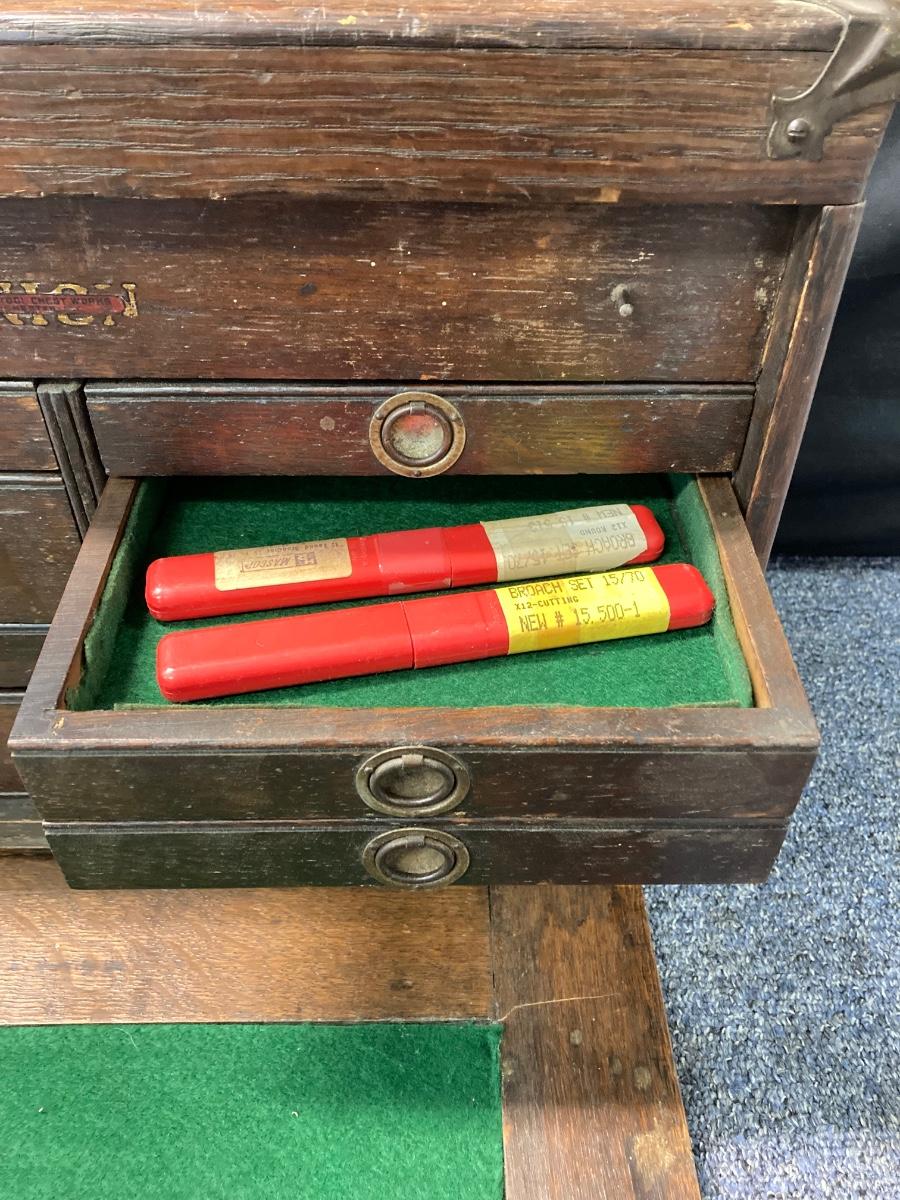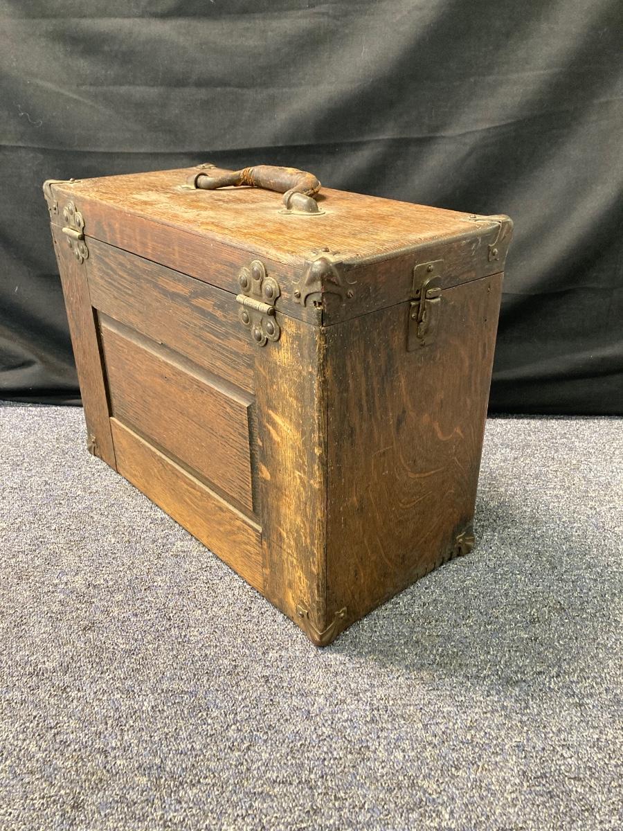 LOT 574: Vintage Union Wooden Tool Chest, Tools, Clock Repair Parts, Small Metal Toolbox with Hardware