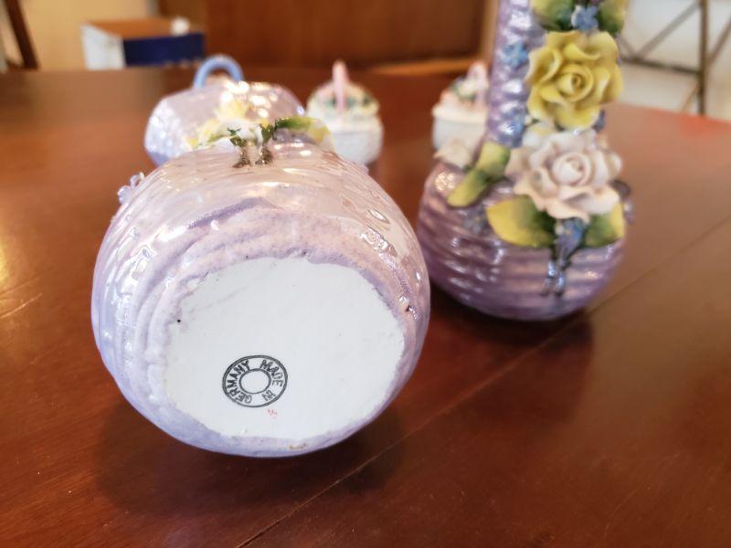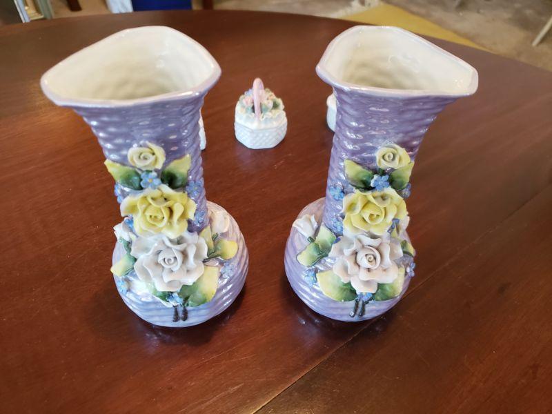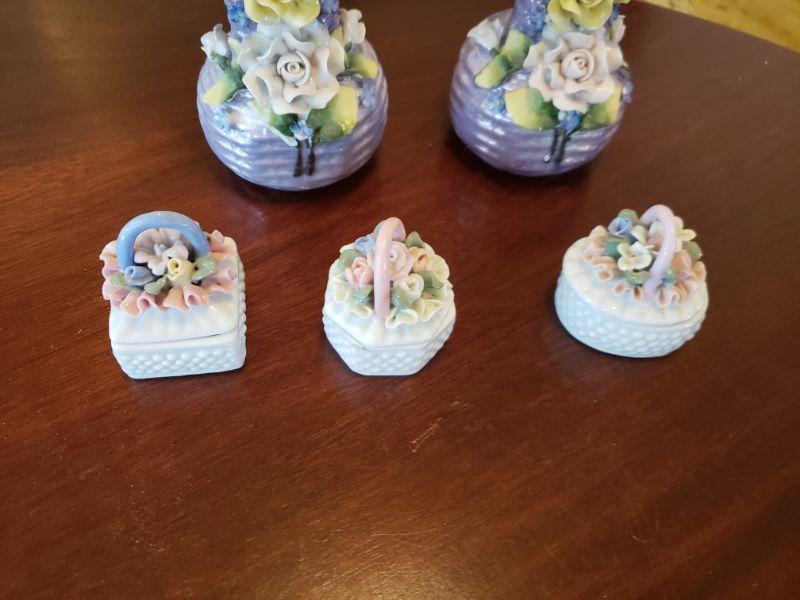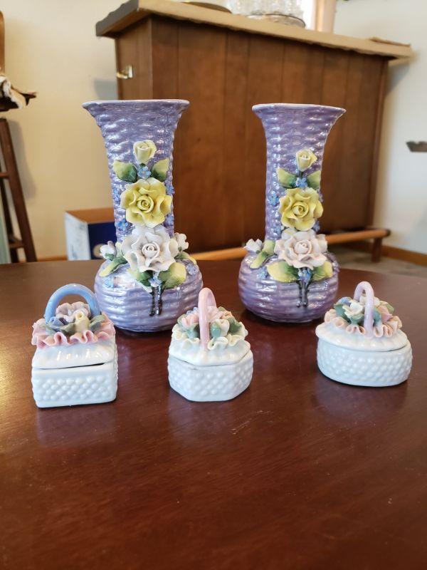 Lot 574: (2) German Vases (3) Little Flower Trinket Boxes