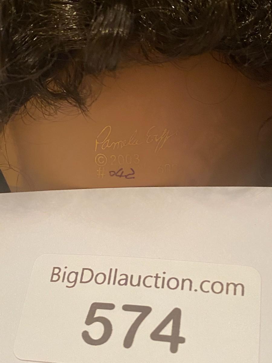 Doll Named "Arcadia" By Pamela Erff with Black Hair Tan Dress
