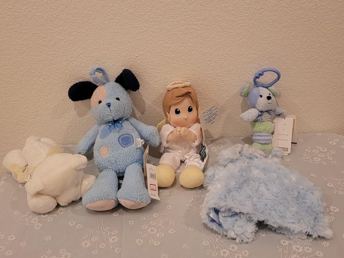 Lot 105: New Baby Boy Plushies, Praying Boy Doll and Musical Bears