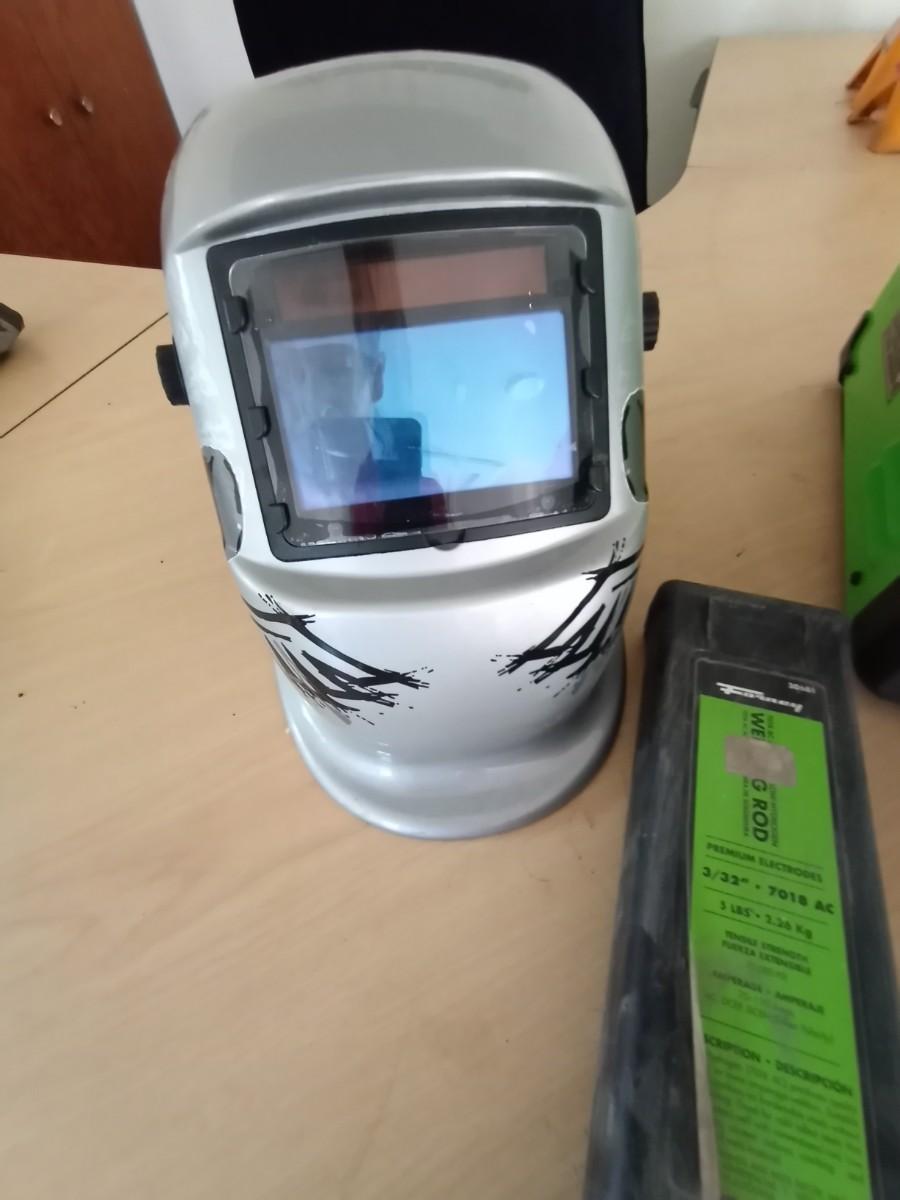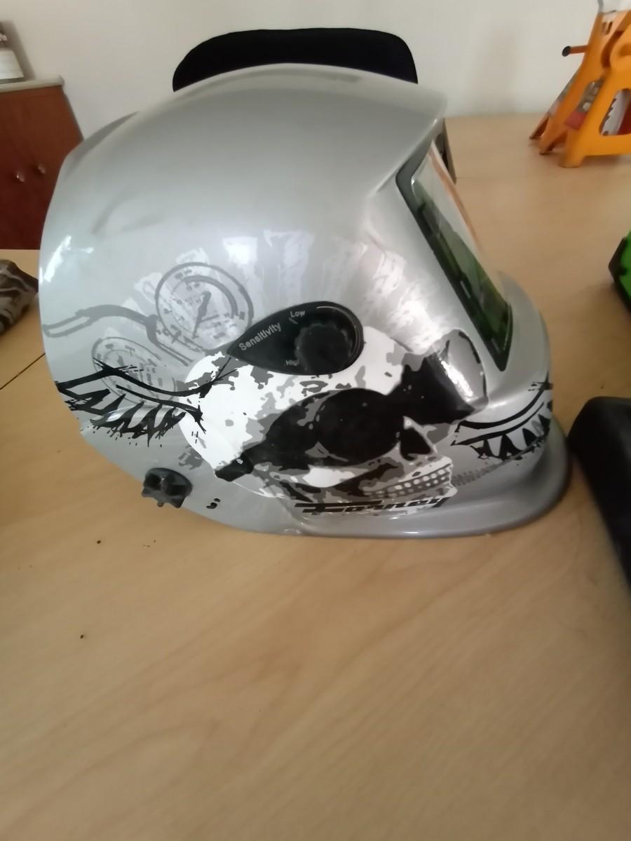 MODAL 56359 TITANIUM WELDER HELMET AND BOX OF WELDING ROD