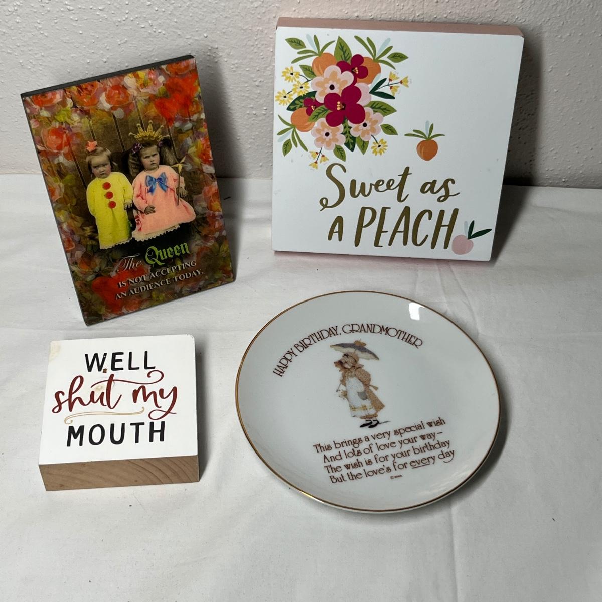 8. Sizes are approximate, you can estimate as our lot number signs are 3.5" long. Also we use an 18" & 36" measuring stick.  We try on certain things to do actual measurements. No guarantees on actual sizes, we try our best!