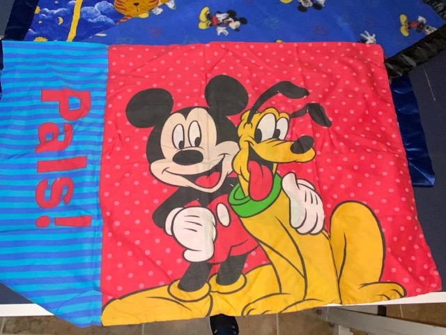 and 1 pillowcase, animal blanket is 44"x 35", mickey is 38" x 38"