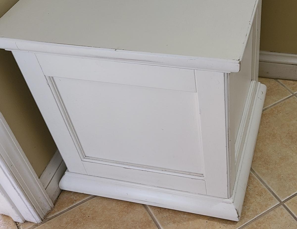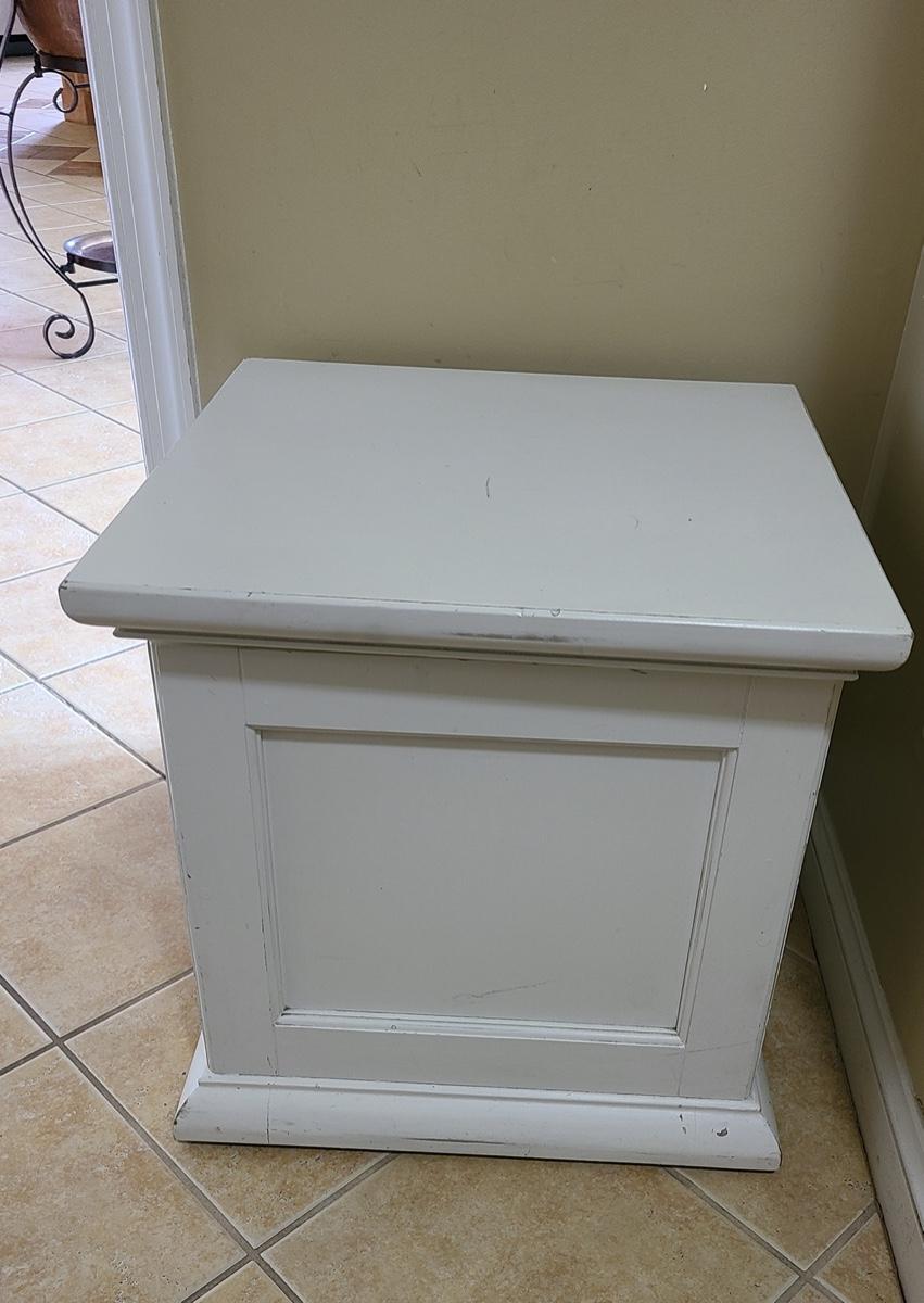 This is the perfect storage cube to sit on and put on shoes, and above it is a frame hook rack to hang coats, or hats on. Minor paint wear, but fully functional and sturdy! Please see all pictures for content of the lot, condition of the lot, and measurements if taken. Pictures are the best representation of the items listed and items are untested unless indicated in description. Thank you for looking and have fun bidding!