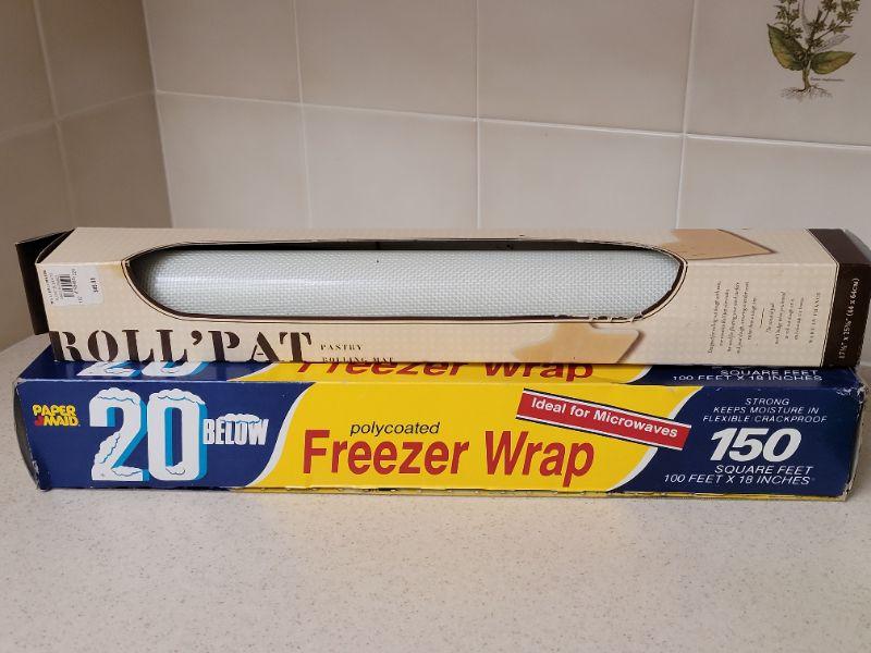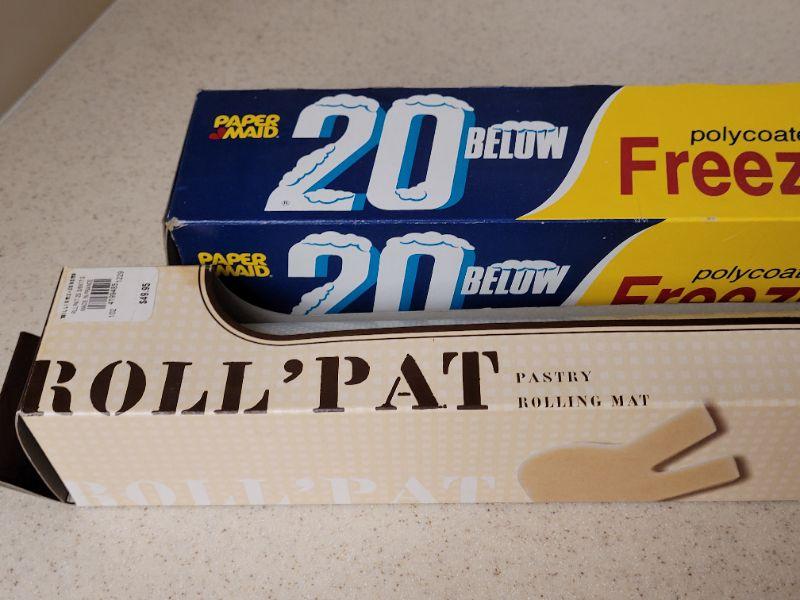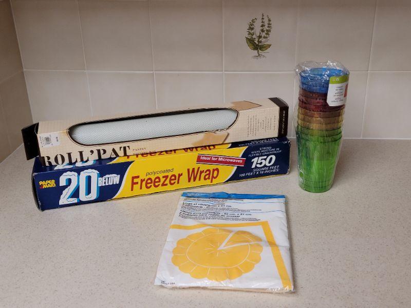Lot 577: Baking Roll Pat, Freezer Wrap, Plastic Cups and Pastry Cloth