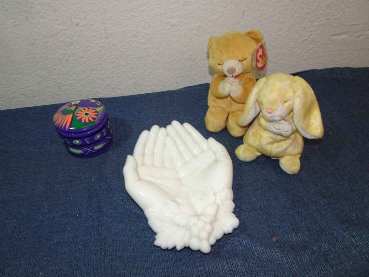 LOT 578. HOME DECOR AND PRAYING BEANIE BABIES